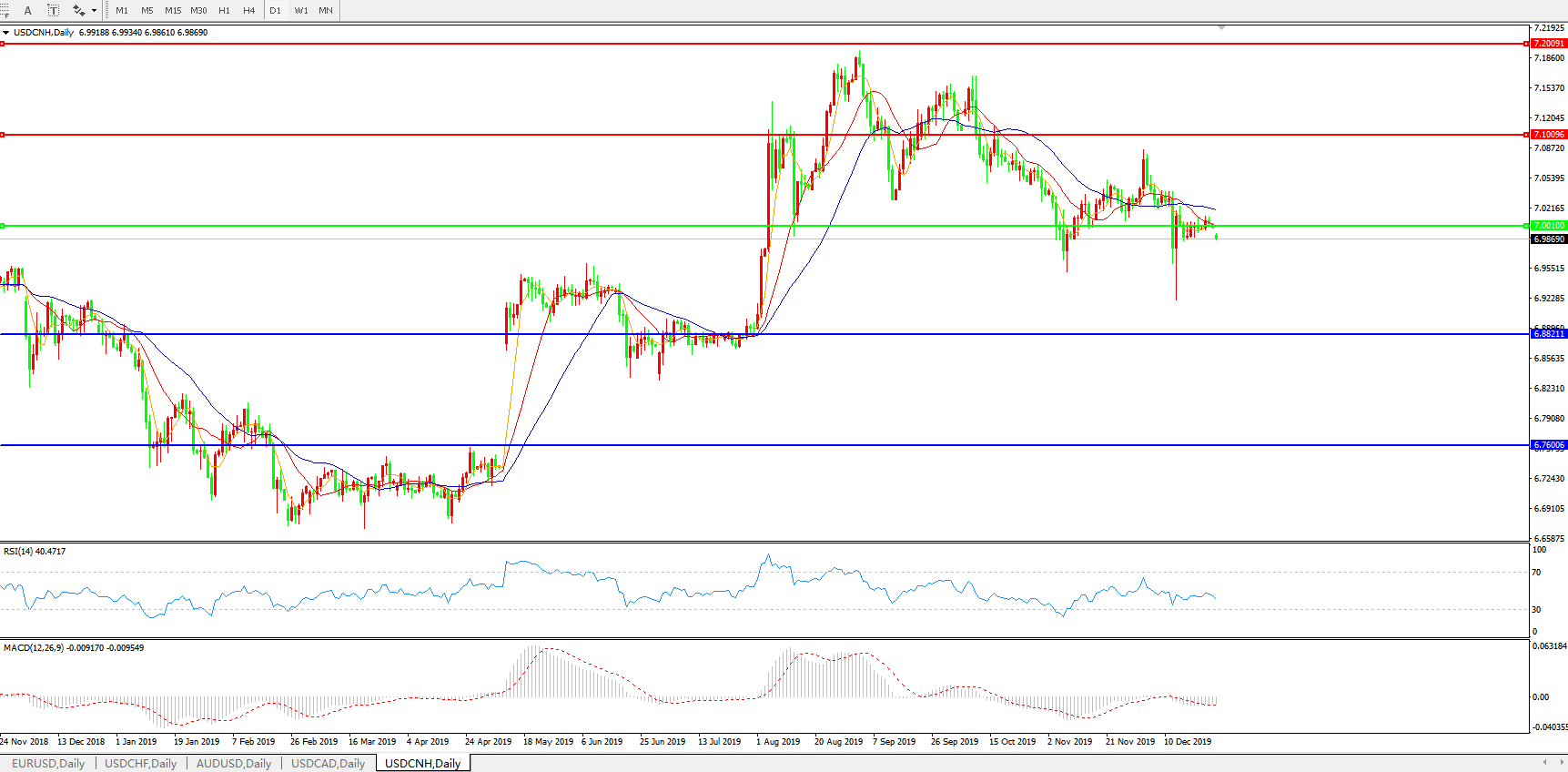 交易策略: 在7.0000之下,看跌,目标价位为6.8820,然后为6.7600。