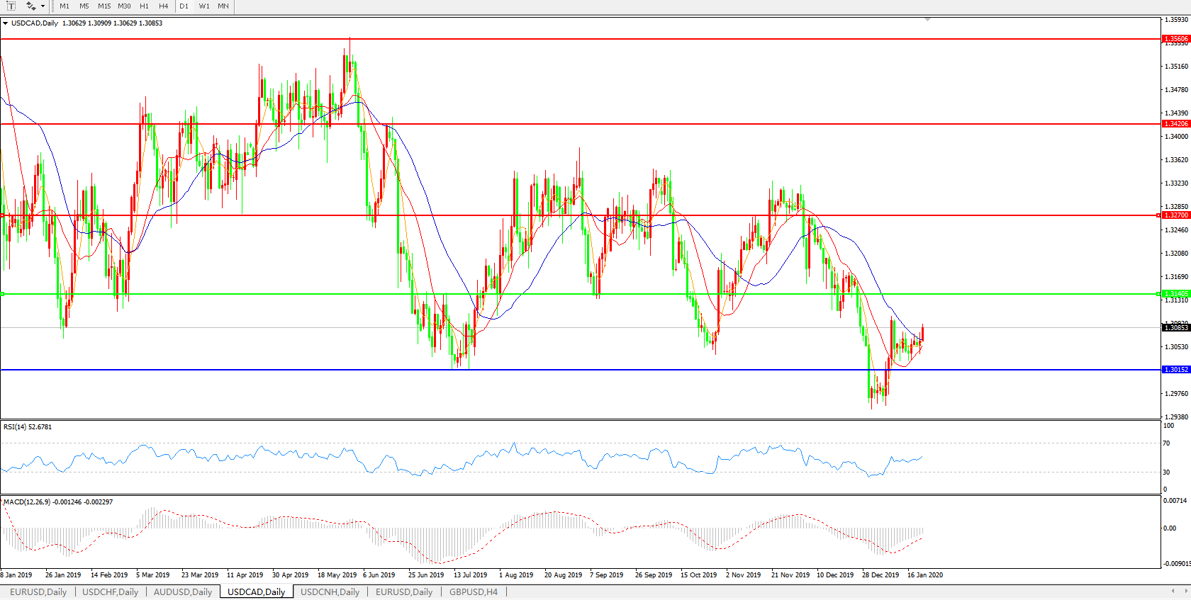 美元兑加元USDCAD    日线图: