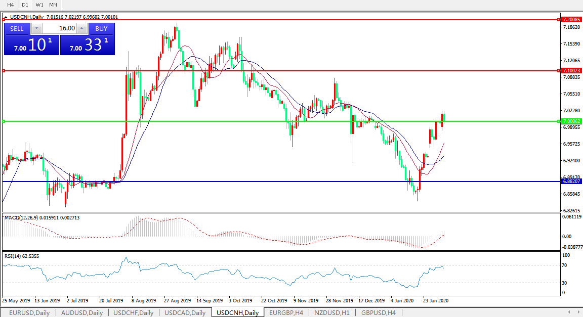 交易策略: 在7.0000之上,看涨,目标价位为7.1000,然后为7.2000。