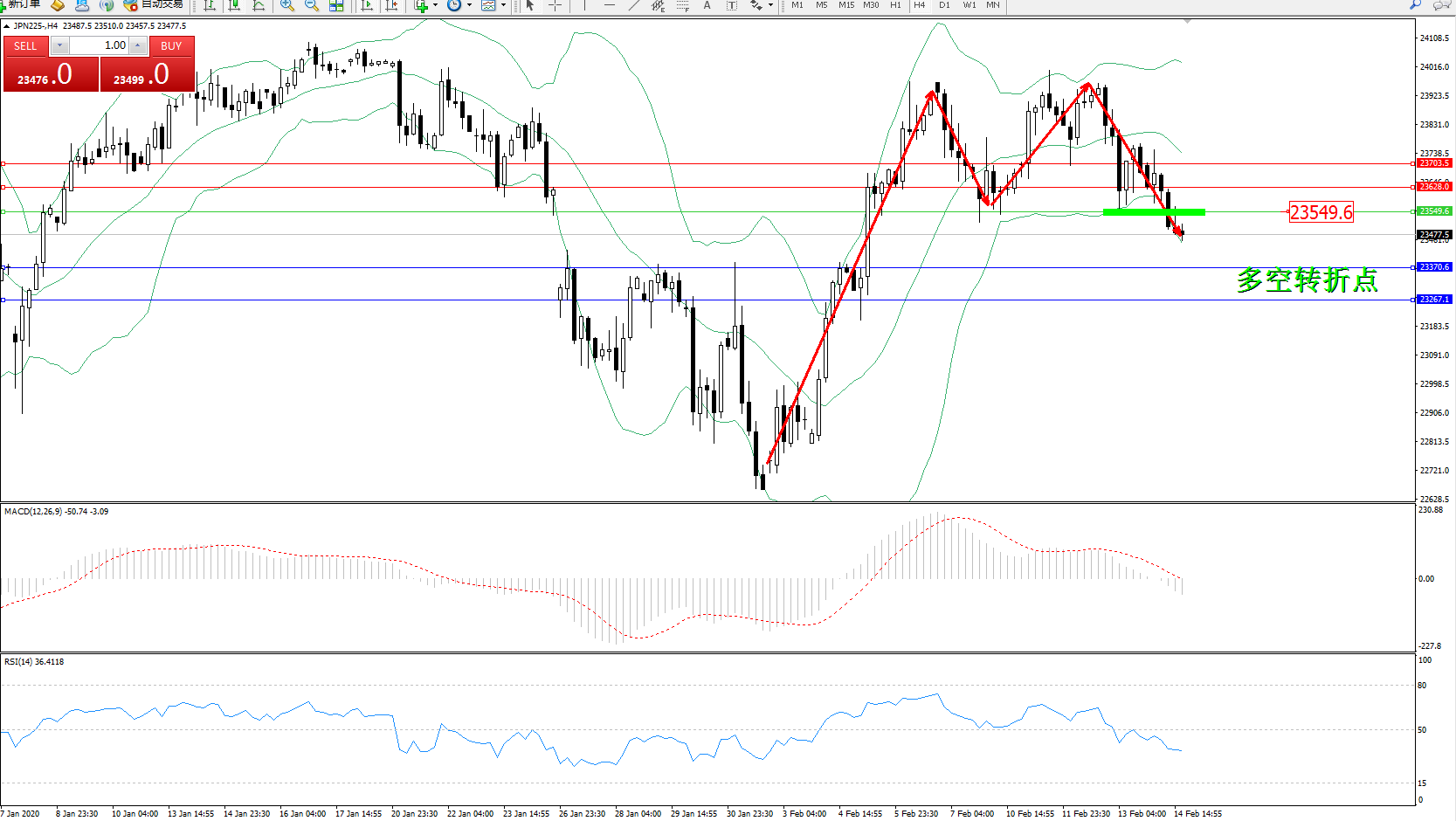 日经225指数214日(周五)收盘下跌160.73点,跌幅0.67%,报23667.00点。美元指数再创四个月新高,得益于强劲的美国经济表现,投资者需继续聚焦亚洲突发卫生事件带来的影响,日本央行希望维持强力的货币宽松政策来支持经济;日本高级官员:劳动力短缺不是阻碍日本经济的一大因素;公营、私营领域必须努力提高生产力,这样经济才能获得可持续的强力增长;在资本和政府支出复苏的影响下,日本经济可能会维持适度扩张。