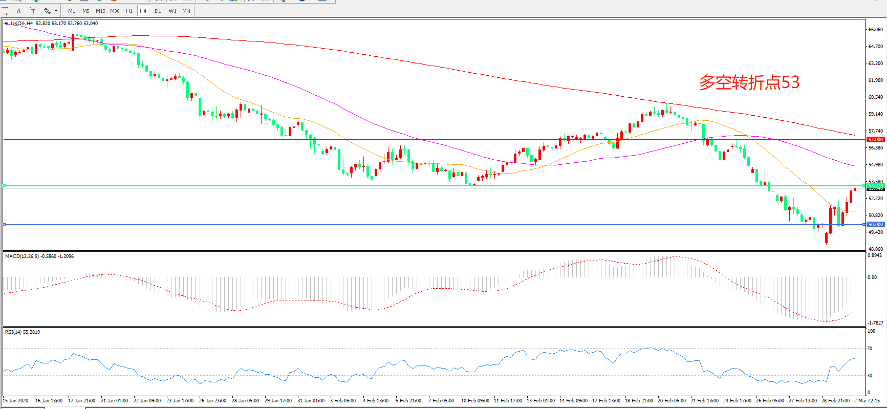 多空转折点:53.00