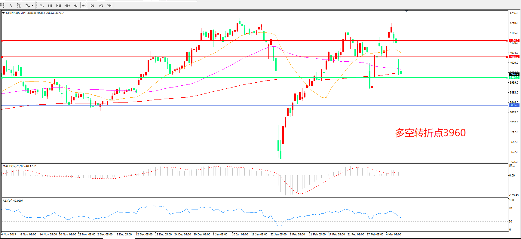 多空转折点:3960.00