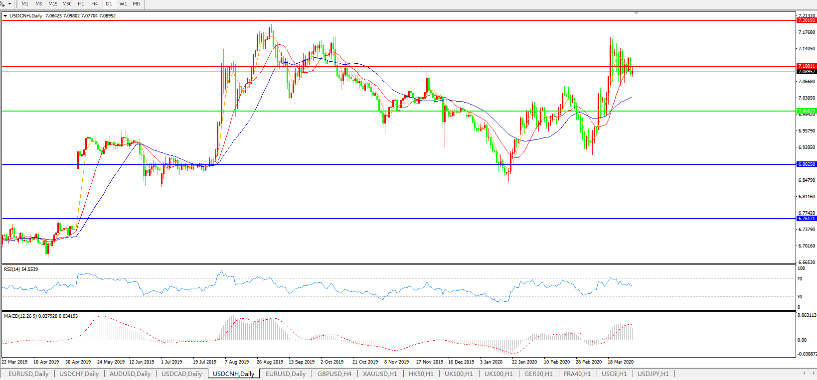 美元兑人民币USDCNH    日线图: