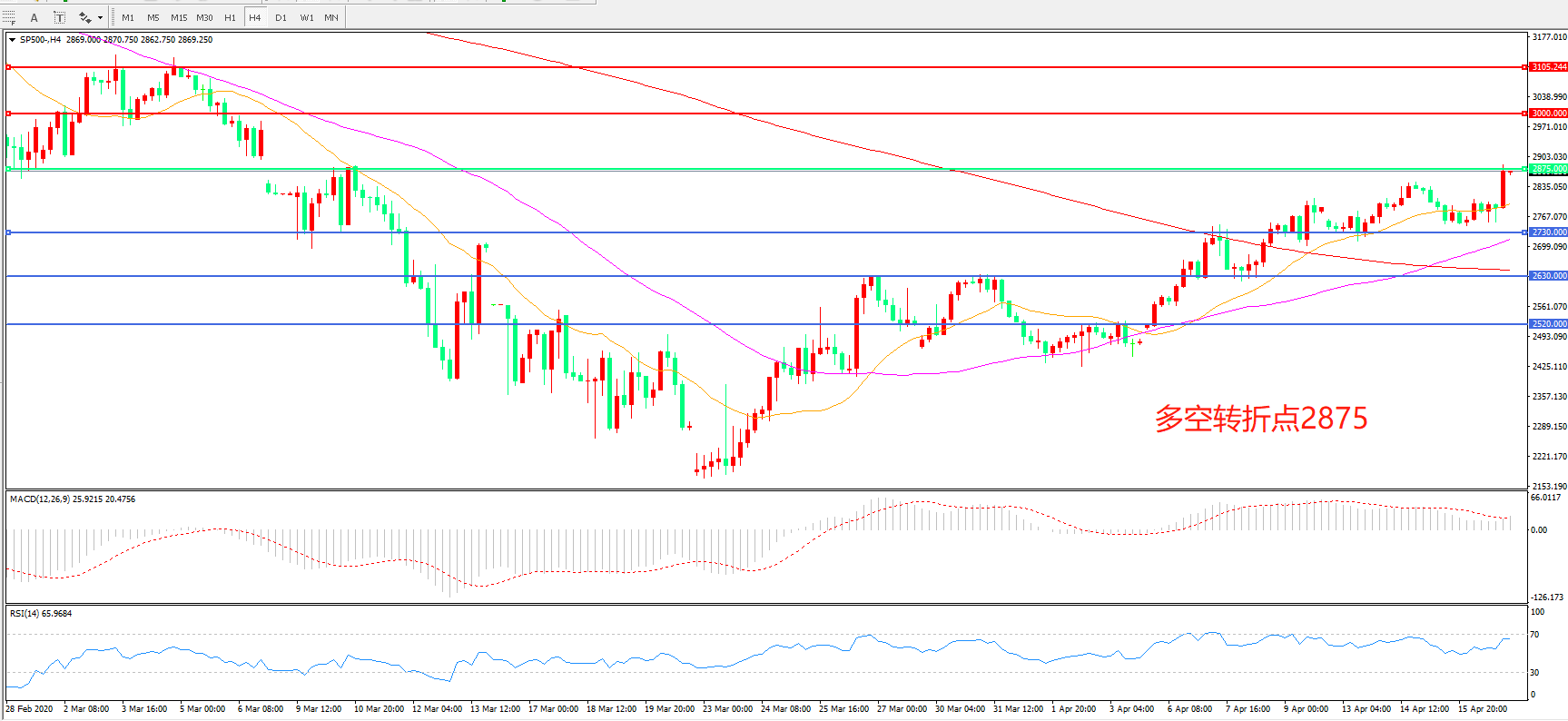 多空转折点:2875.00