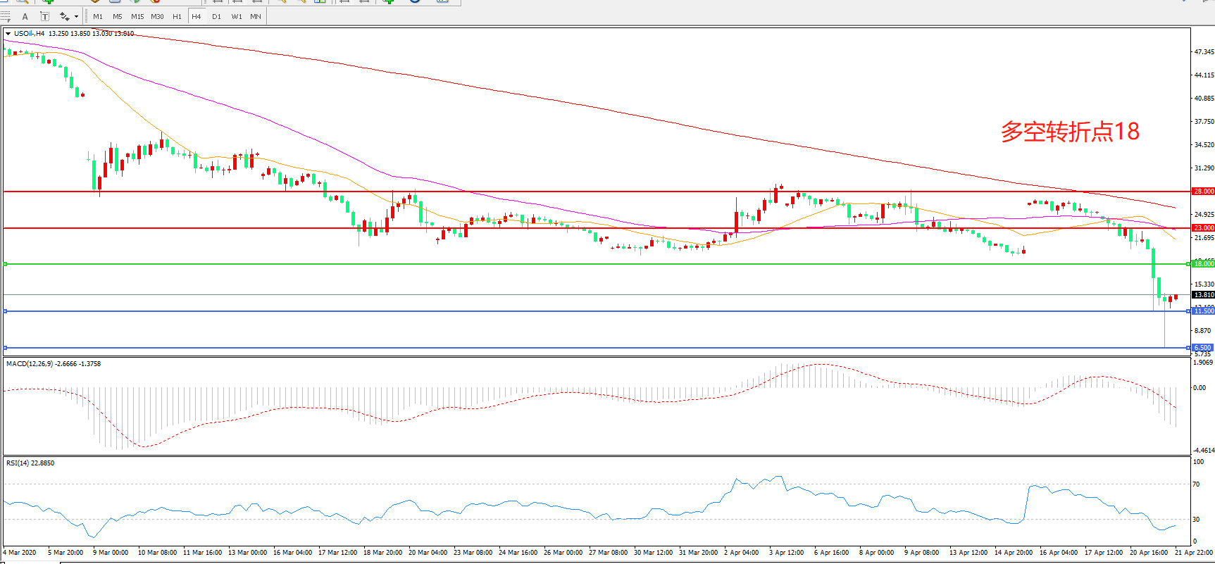 周二(4月21日)油价崩溃势头扩散,空头继续利用库存不足的问题,重演前一天的崩盘行情。美油和布油双双暴跌,其中6月WTI原油一度跌破7美元/桶,跌幅高达68%!