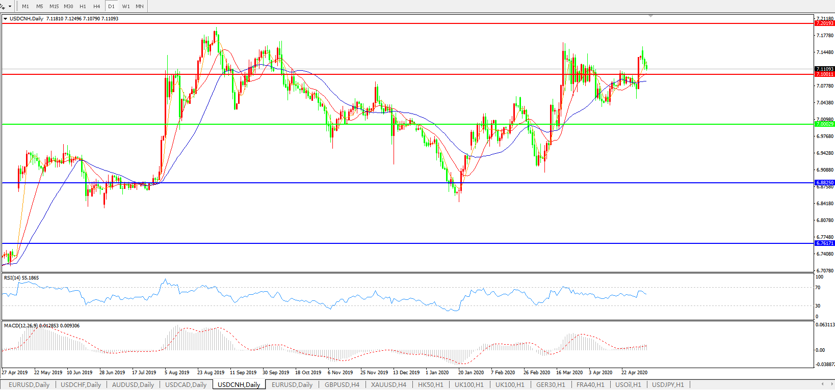 美元兑人民币USDCNH    日线图: