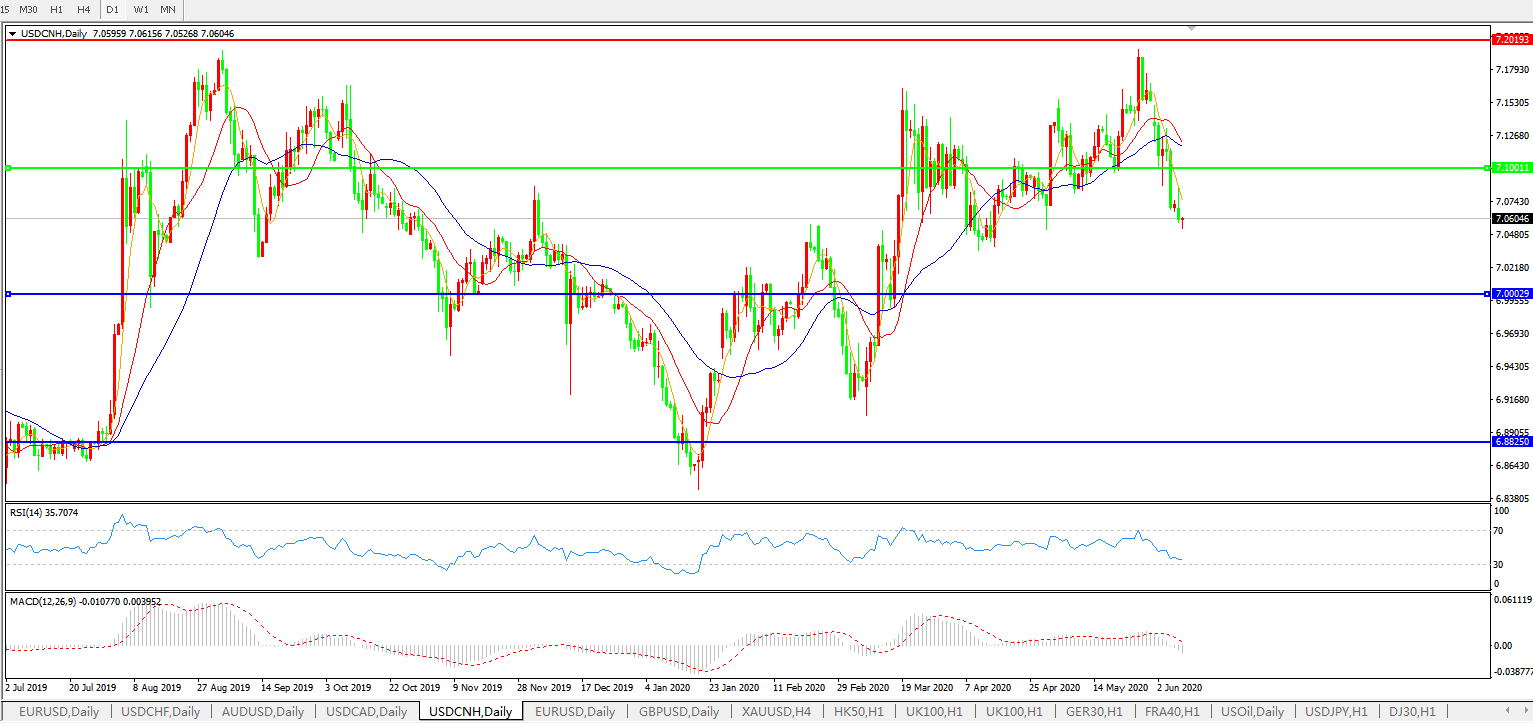 交易策略: 在7.1000之下,看跌,目标价位为7.0000,然后为6.8820。
