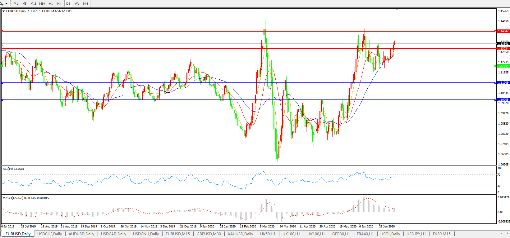 欧元兑美元EURUSD   日线图: