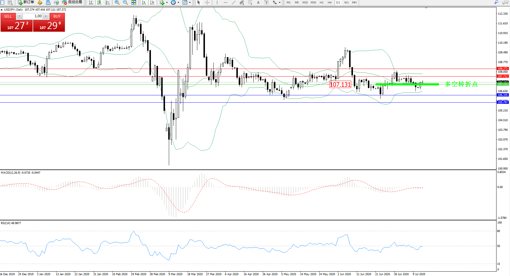 美元兑日元下跌0.05%107.24;未来几周美元兑日元料维持宽幅区间整理格局。日本央行本周三(715日)将举行政策会议,可能考虑在其主要政策工具上按兵不动,并且不对其经济前景做出大的调整。央行官员在保持高度戒备的同时,希望继续密切监视日本央行自3月以来为应对疫情造成的经济冲击所实施措施的影响。