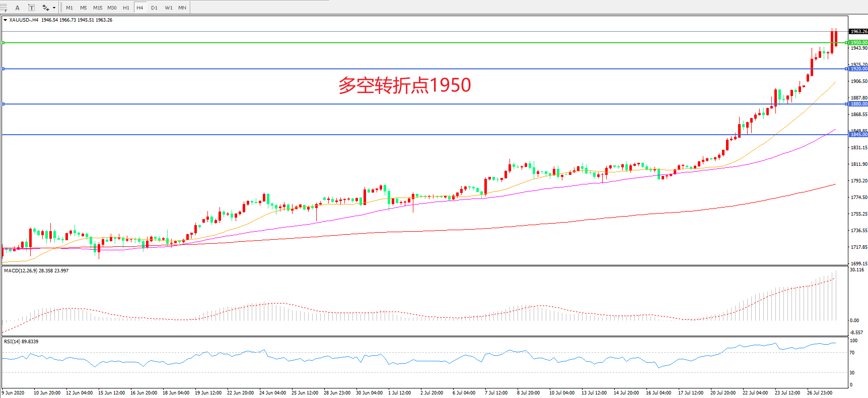 交易策略:在1950.00之上看涨,目标2000.00   2030.00