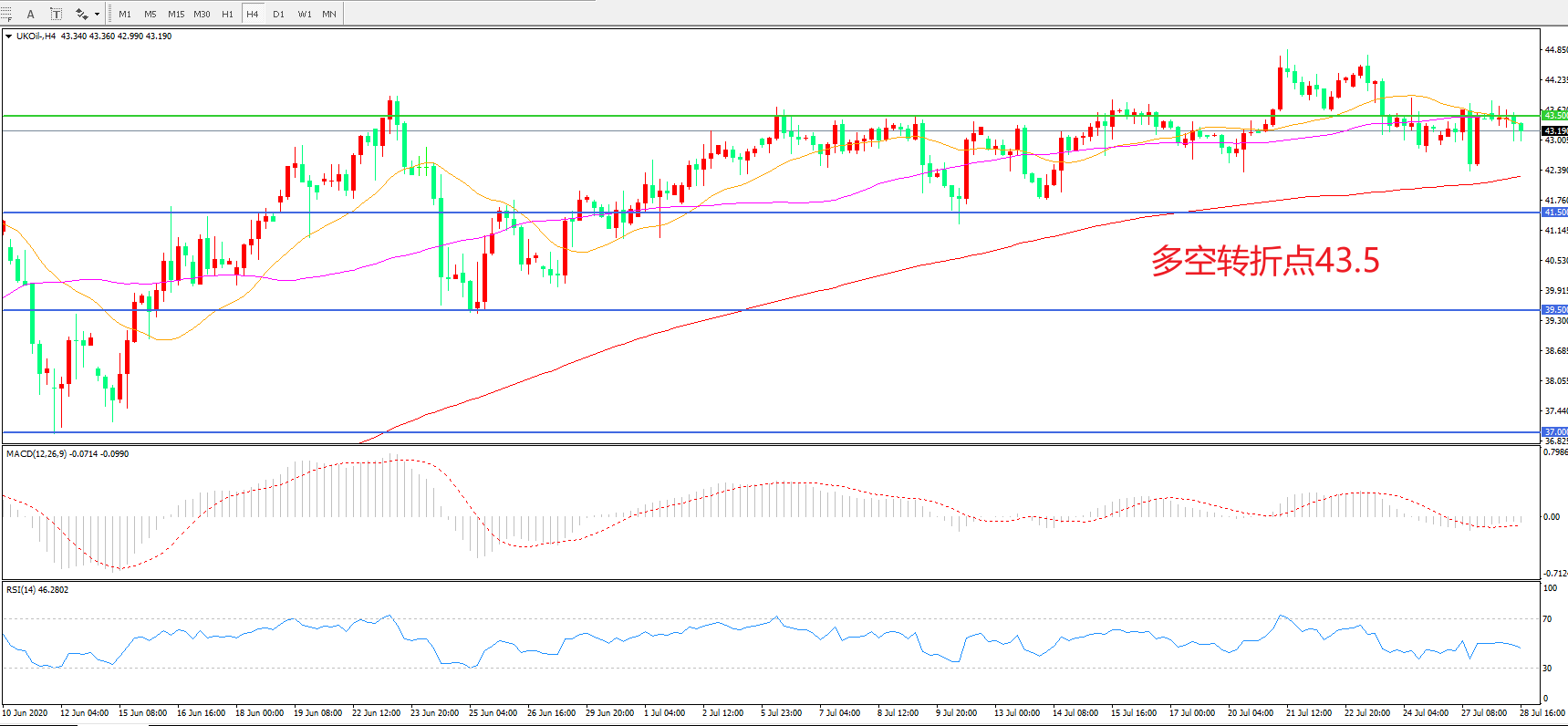 周三(7月29日),根据美国石油协会公布的数据显示,美国当周API原油库存减少682.9万桶,大幅好于预期,数据公布后,布伦特原油短线小幅走高,收报43.19美元/桶。到目前为止,油价走势动能有限且普遍缺乏波动性,EIA数据如能出现利好,有望打破近期僵局。