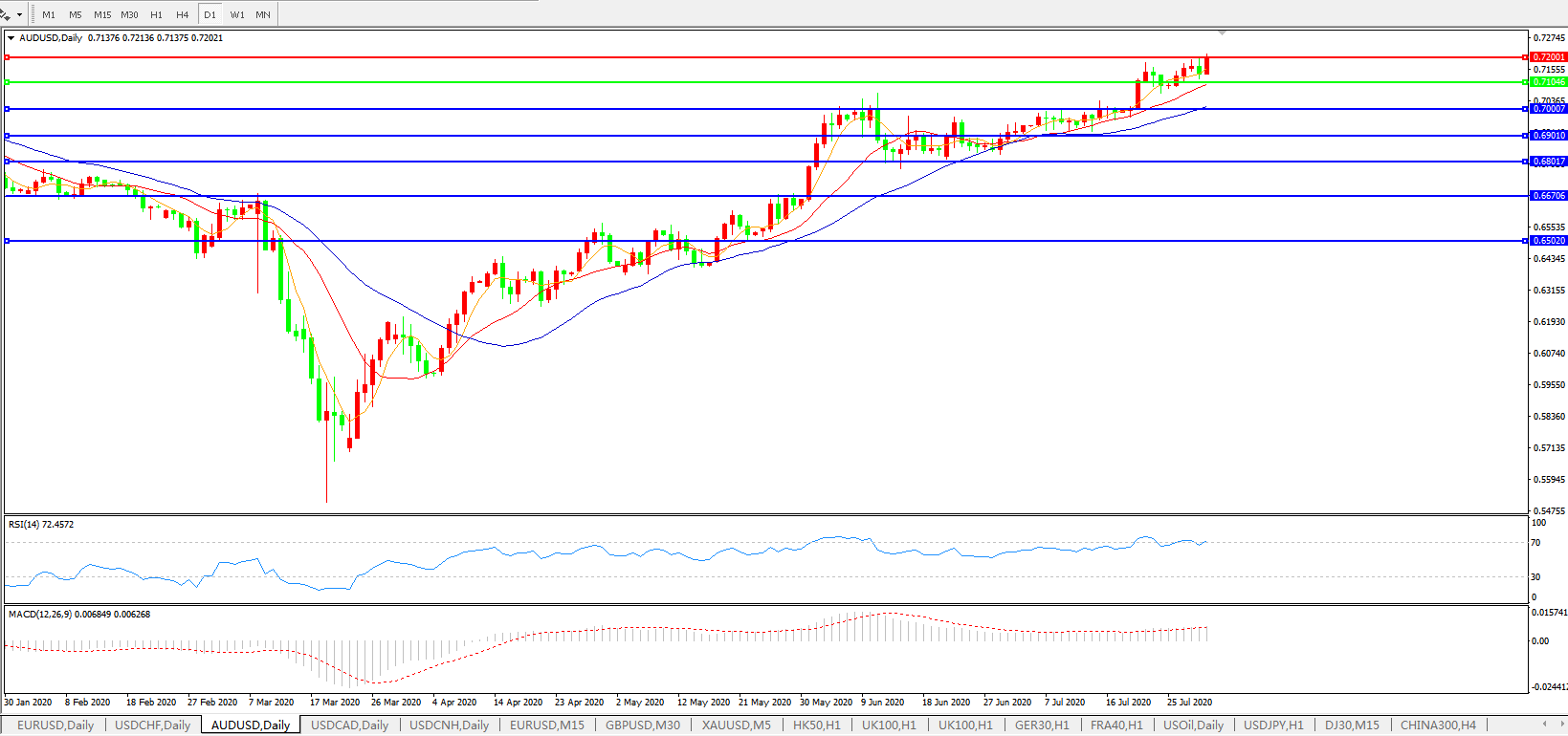 澳元兑美元AUDUSD 日线图: