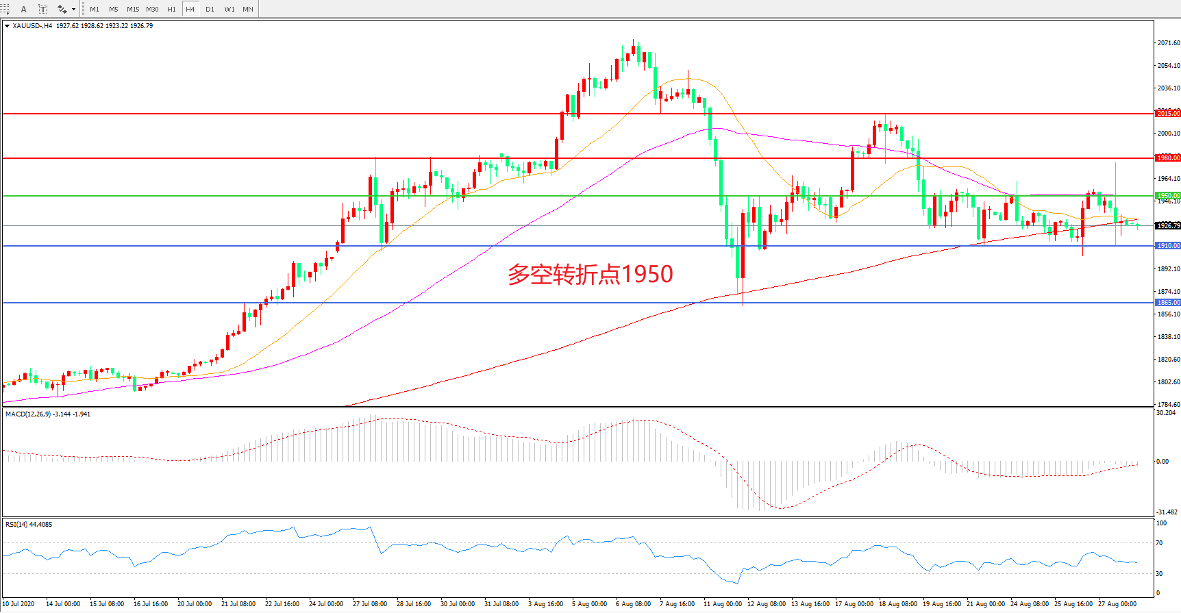 交易策略:在1950.00之下看跌,目标1910.00   1865.00