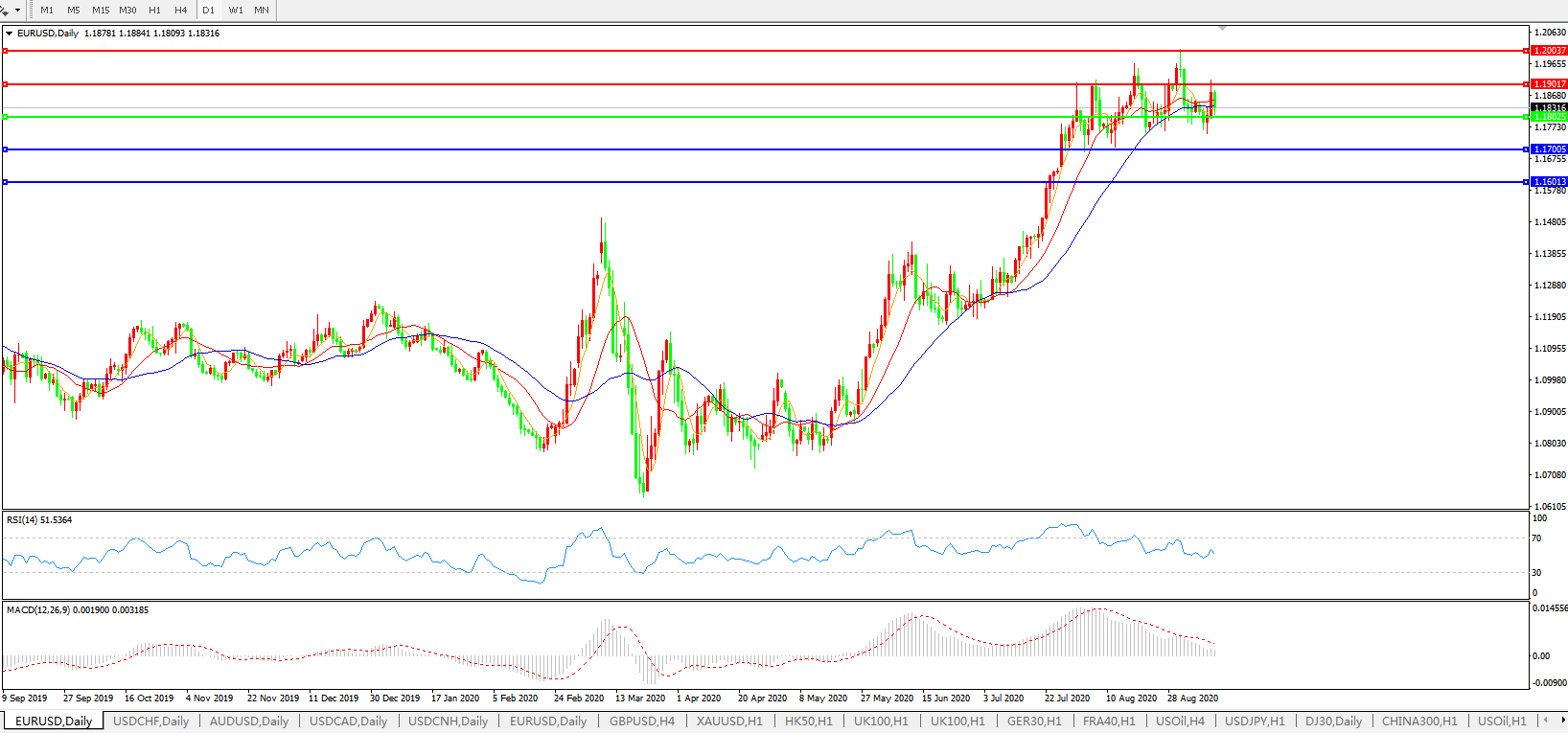 备选策略:1.1800上方看涨,目标1.1900、1.2000