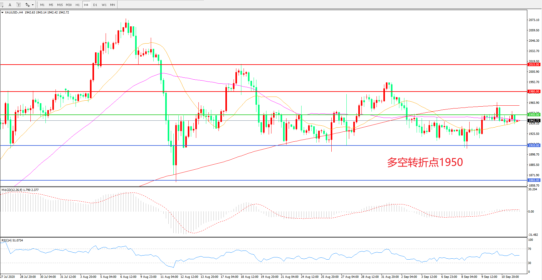 备选策略:在1950之下看跌,目标1910.00 1865.00