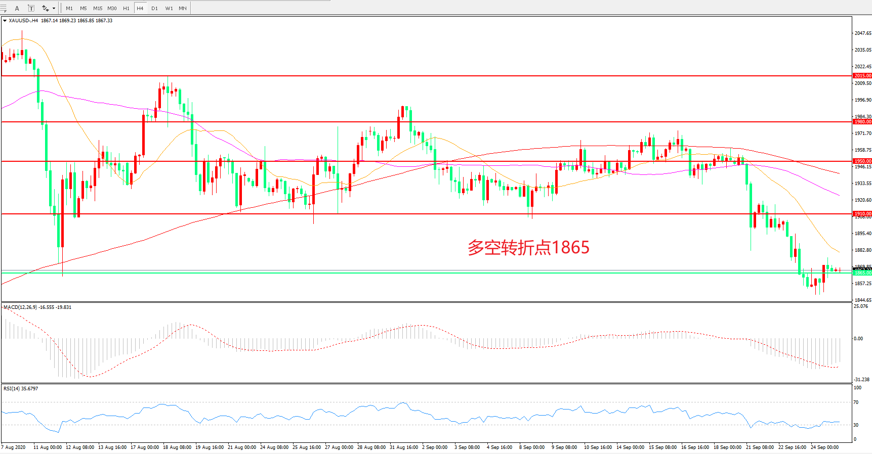 交易策略:在1865.00之下看跌,目标1835.00   1800.00