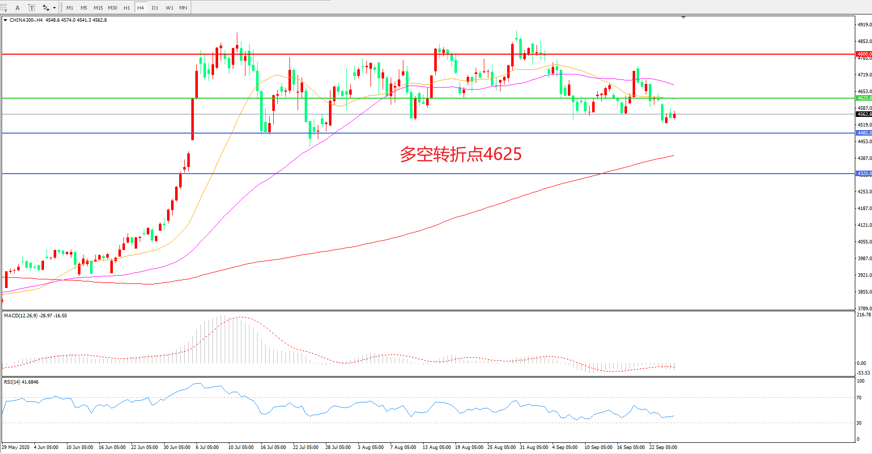 多空转折点:4625.00