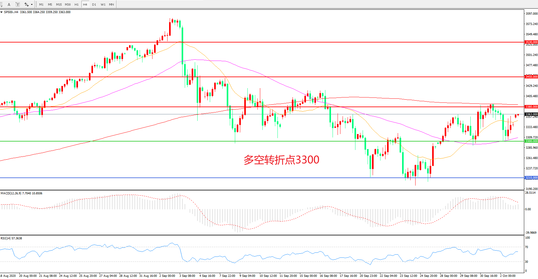 多空转折点:3300.00