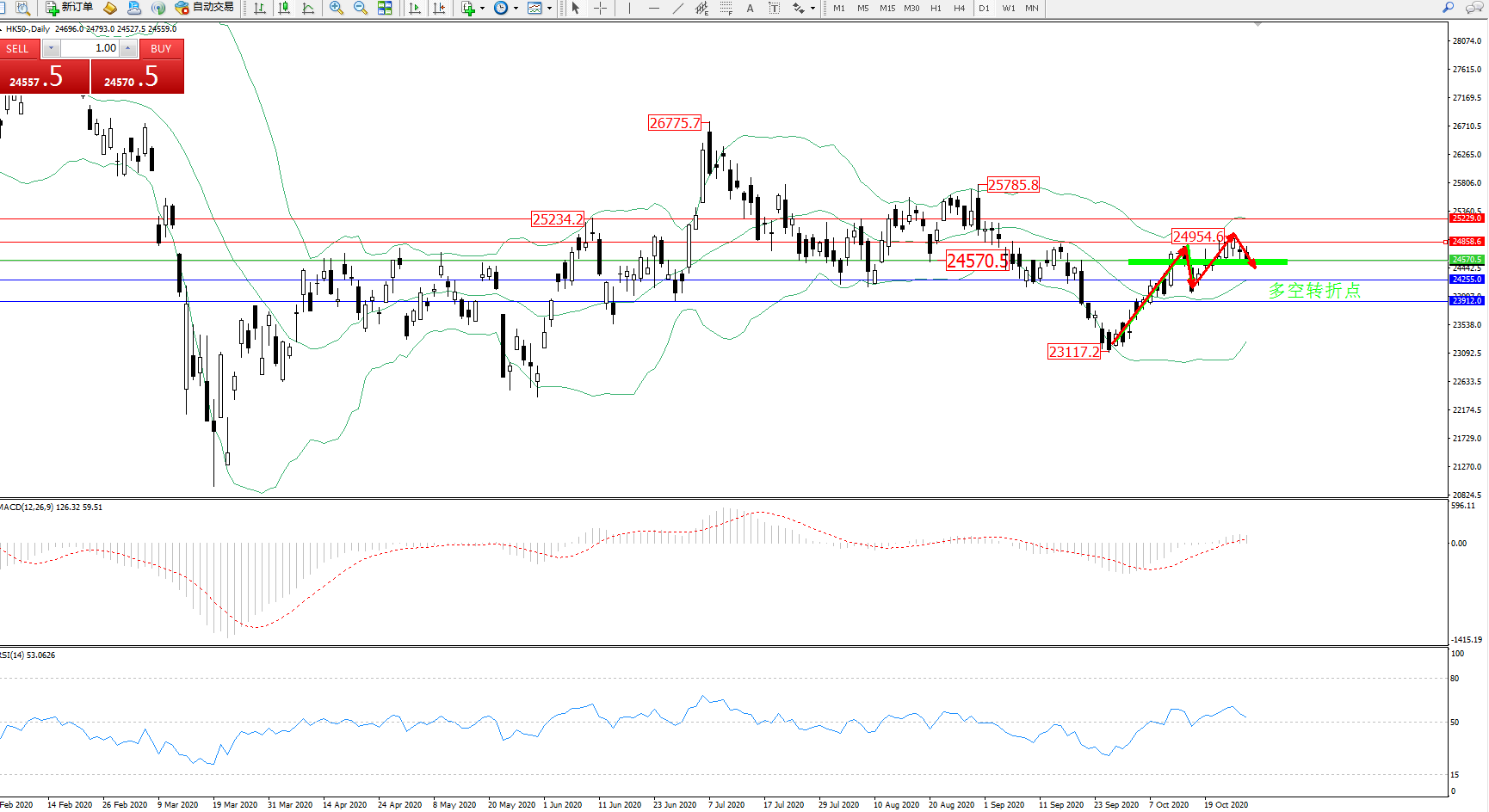技术点评:低位多头动力延续布林带指标中上轨区间吃弱势震荡上扬走势中,多头动力高短暂遇阻回调,纠结于布林带指标通道中上轨区间震荡,布林带指标呈收口走势后有上移迹象,且有收口态势,前期高位近在咫尺,MACD指标低位多头动力震荡上移至0轴线上方多头动力维持整理徘徊中,RSI指标处于50均衡线上方弱势整理中;