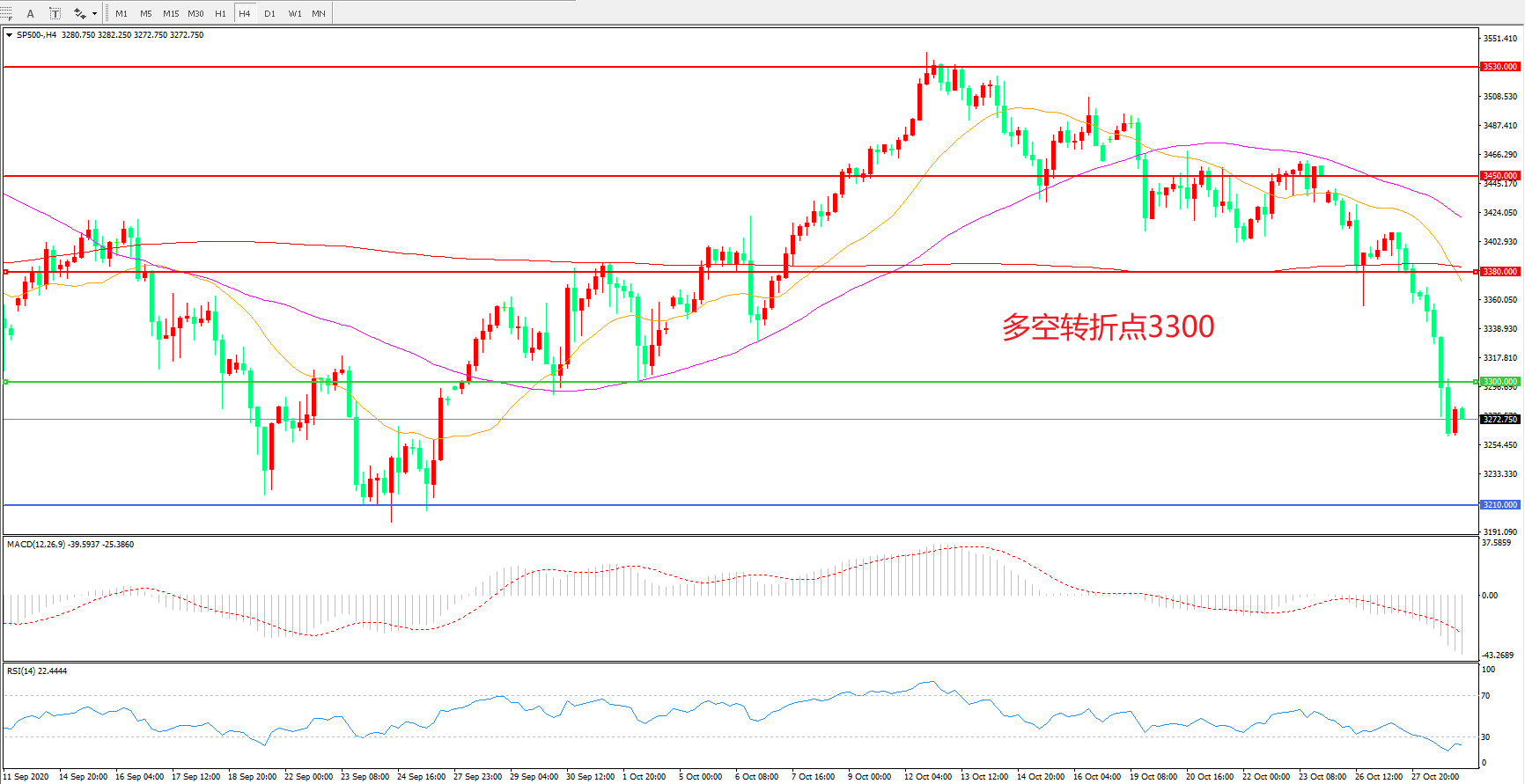 多空转折点:3300.00
