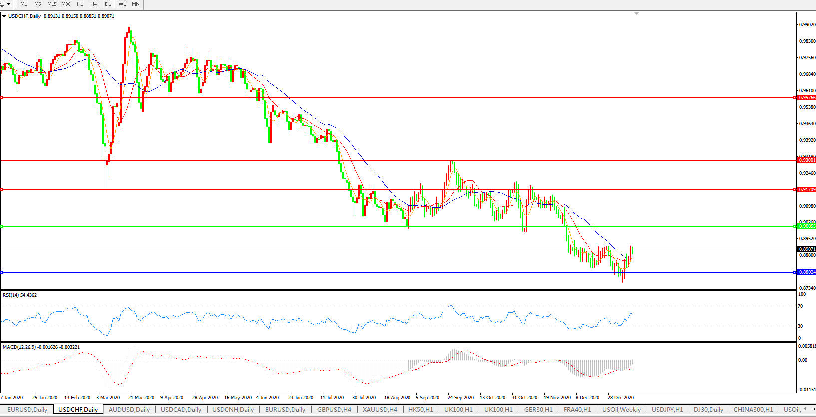 美元或遭遇过度做空,美元兑瑞郎继续反弹