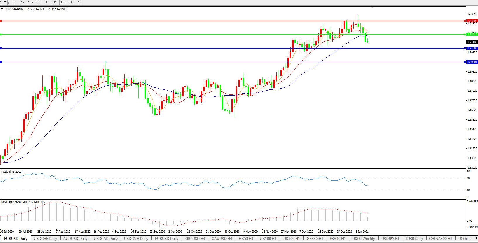 交易策略:1.2200下方看跌,目标1.2100、1.2000