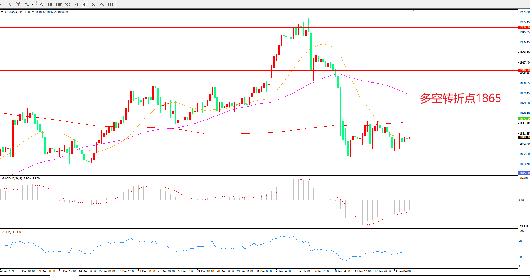 交易策略:在1865.00之下看跌,目标1815.00   1765.00