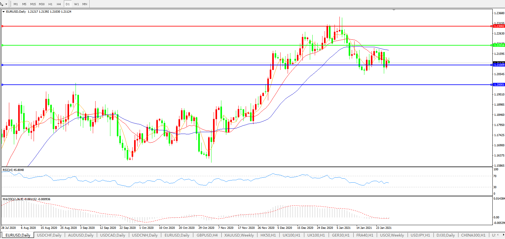 支撑位:1.2100 1.2000