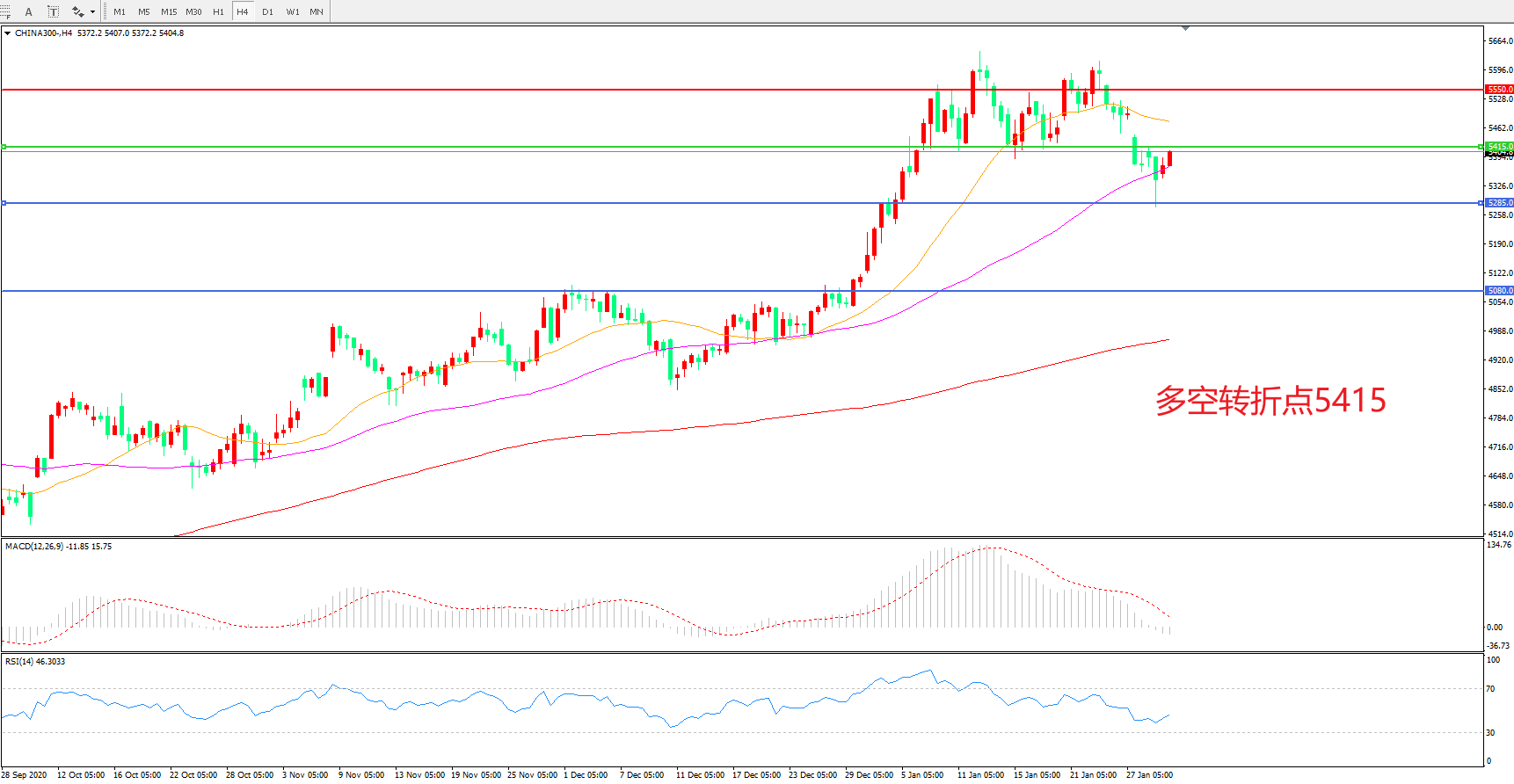 多空转折点:5415.00
