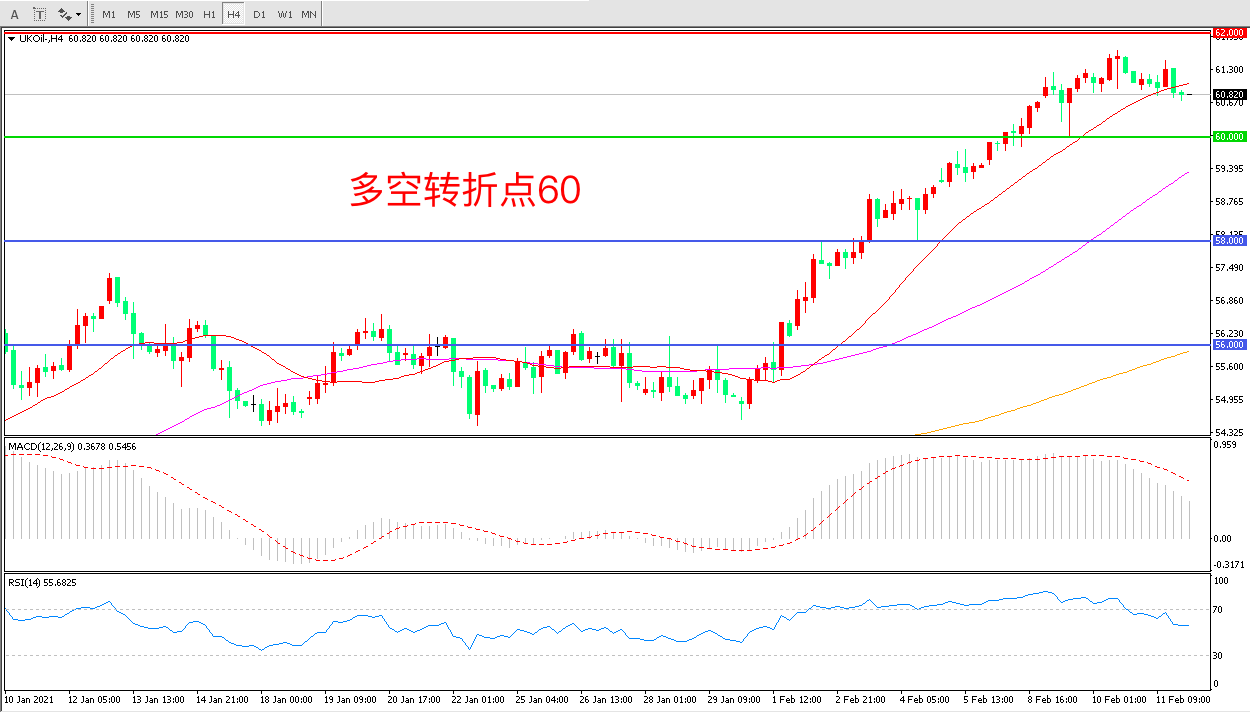 交易策略: 在60.00之上看涨,目标62.00 65.00