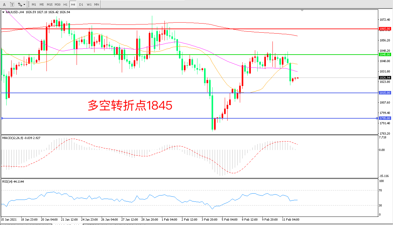 交易策略:在1845.00之下看跌,目标1815.00 1795.00