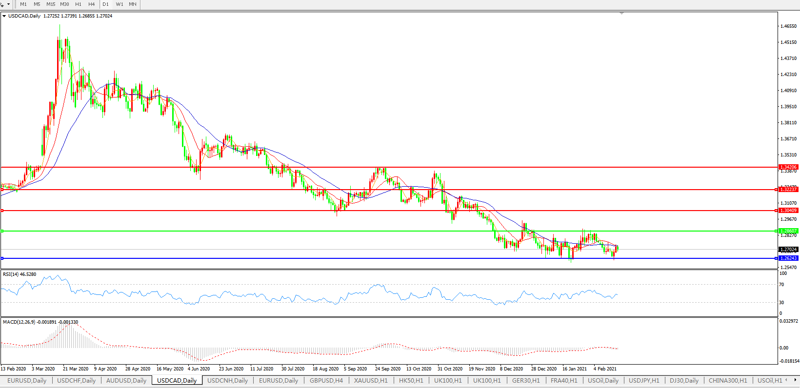 美元兑加元USDCAD    日线图: