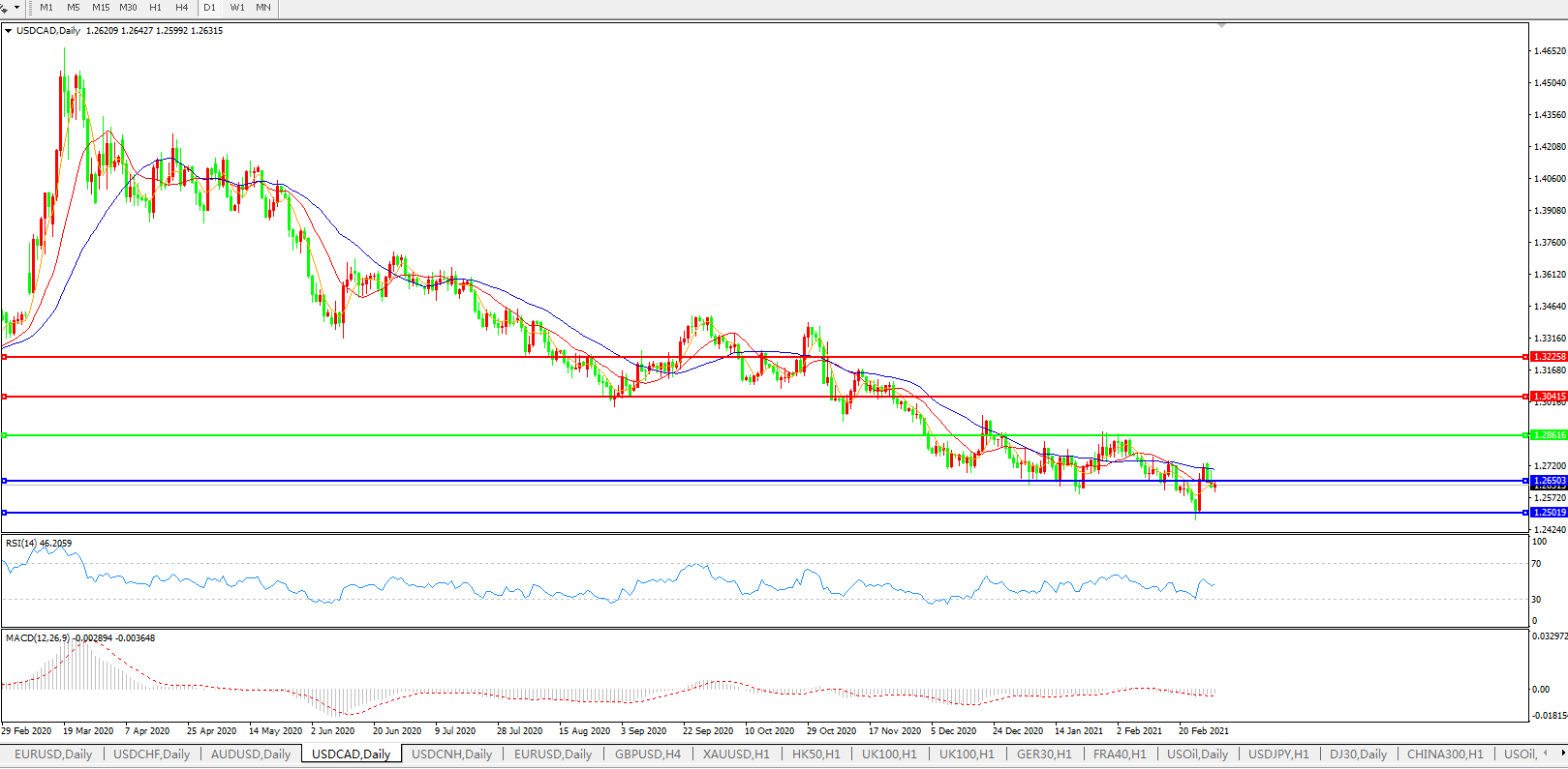 美元兑加元USDCAD    日线图: