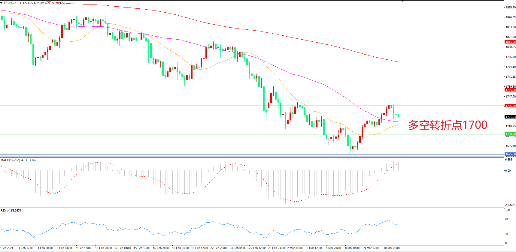 交易策略:在1700.00之上看涨,目标1735.00    1755.00