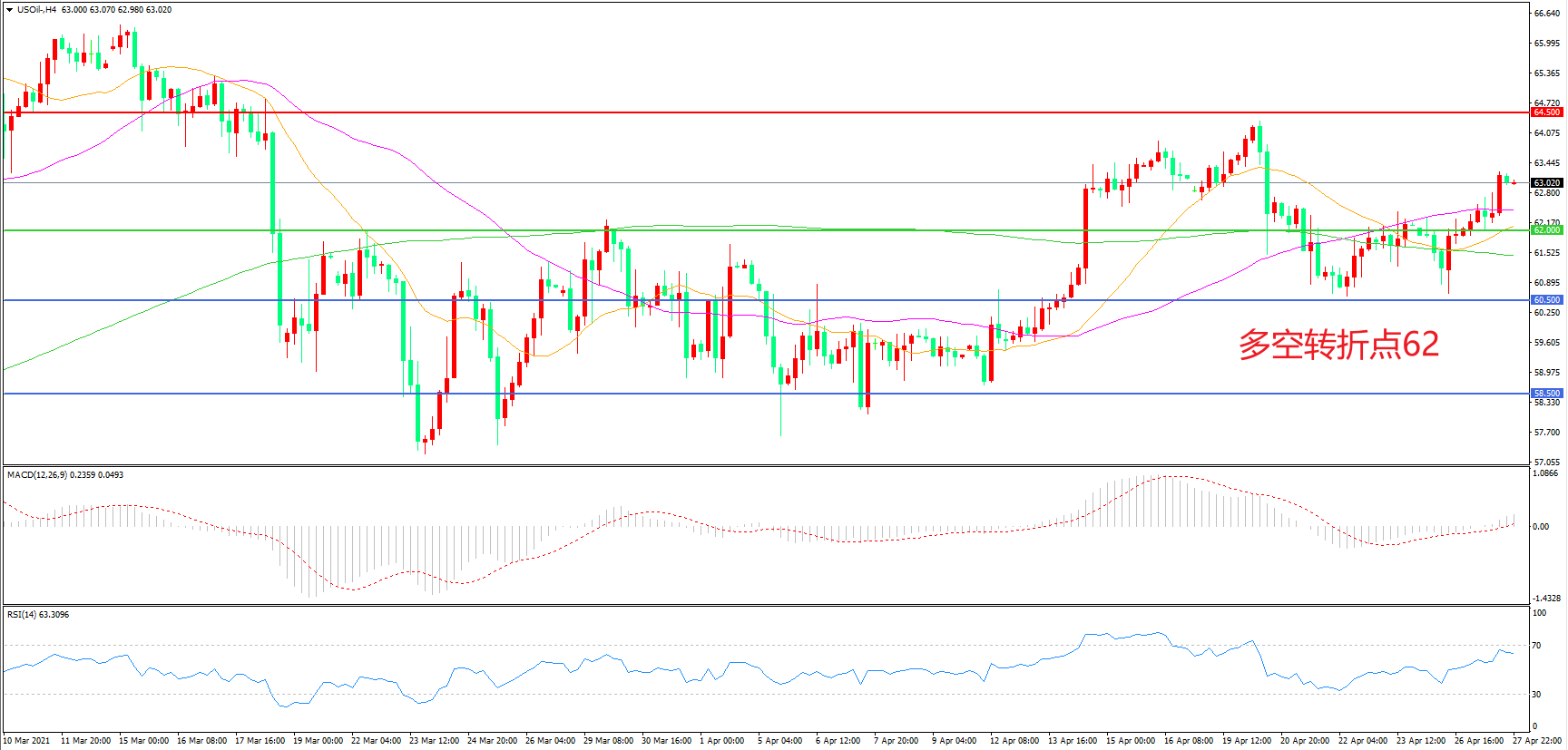 交易策略:在62.00之上看涨,目标64.50    67.00