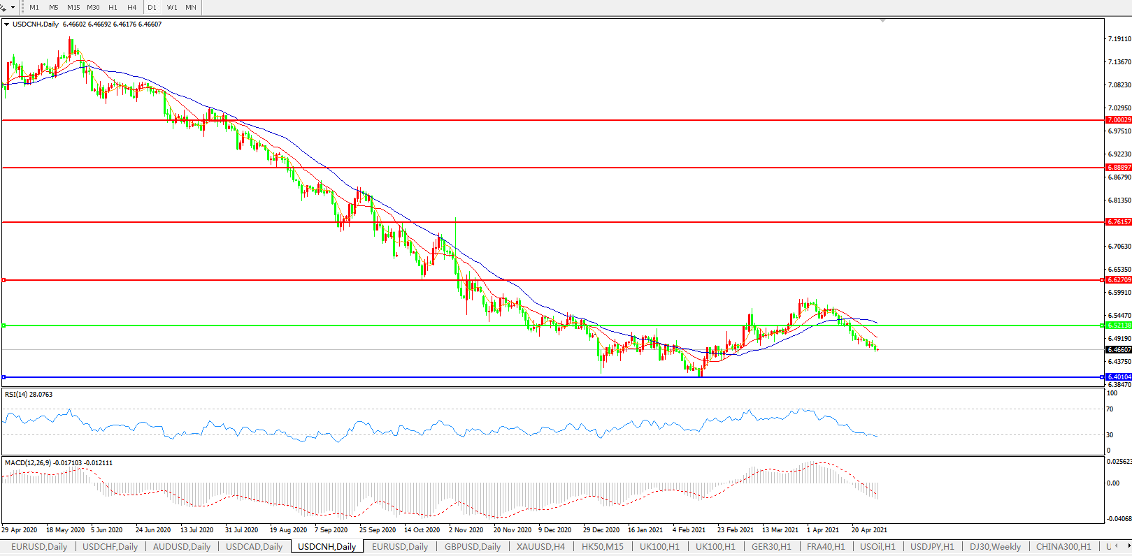 备选策略:在6.5200之上,看涨,目标价位为6.6270,然后为6.7615。