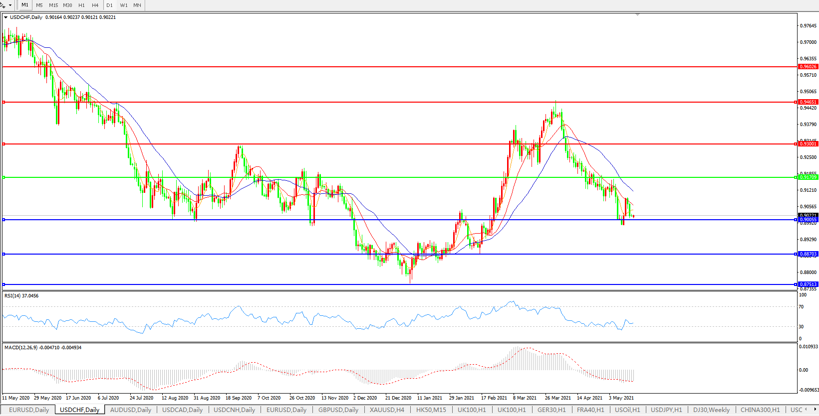 美元兑瑞郎USDCHF 日线图: