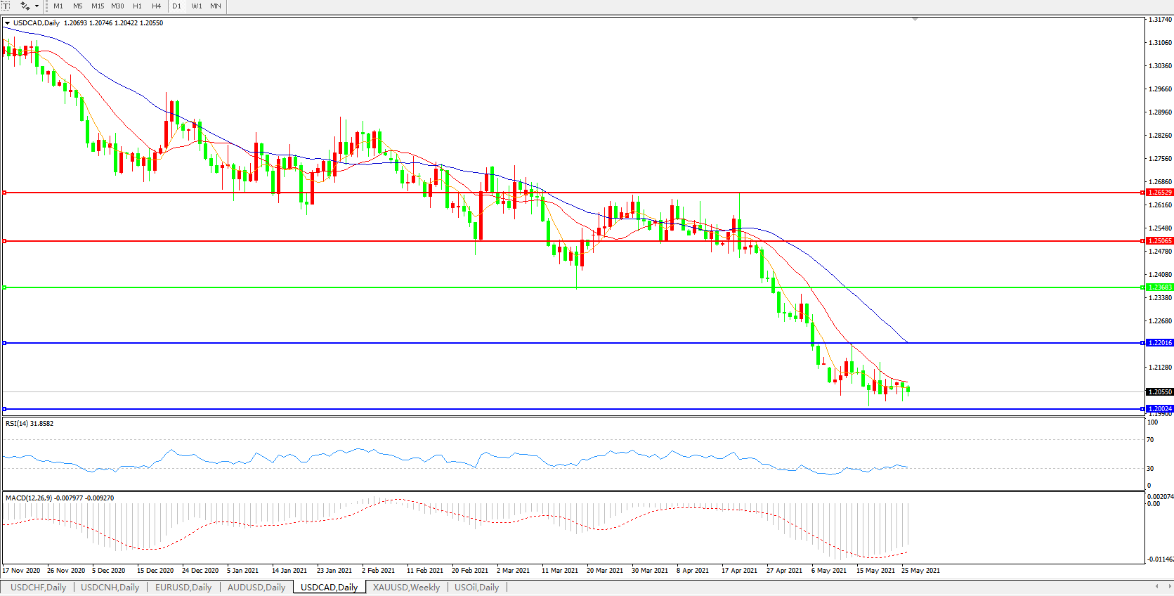 美元兑加元USDCAD 日线图: