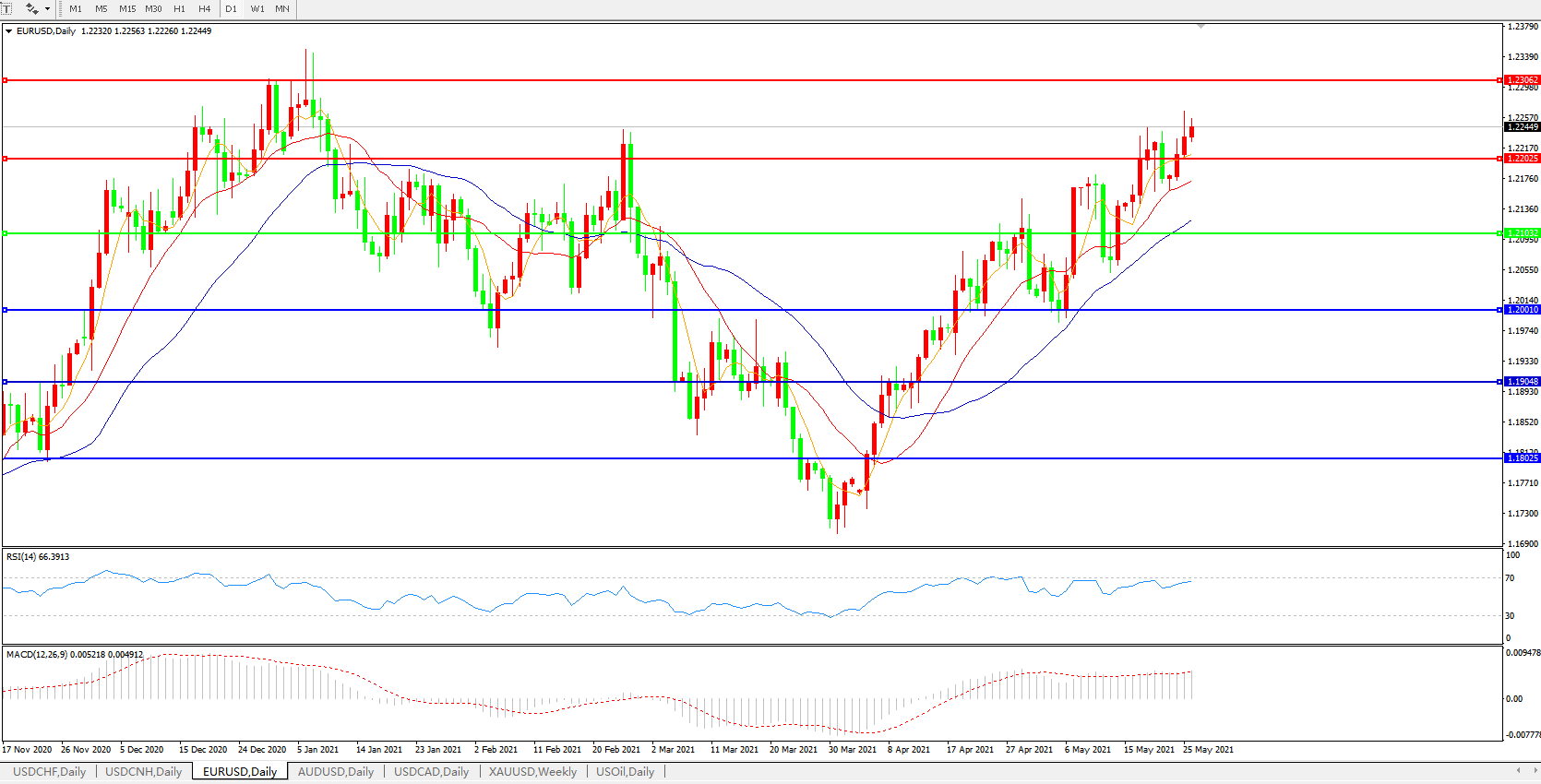交易策略:1.2100上方看涨,目标1.2200、1.2300
