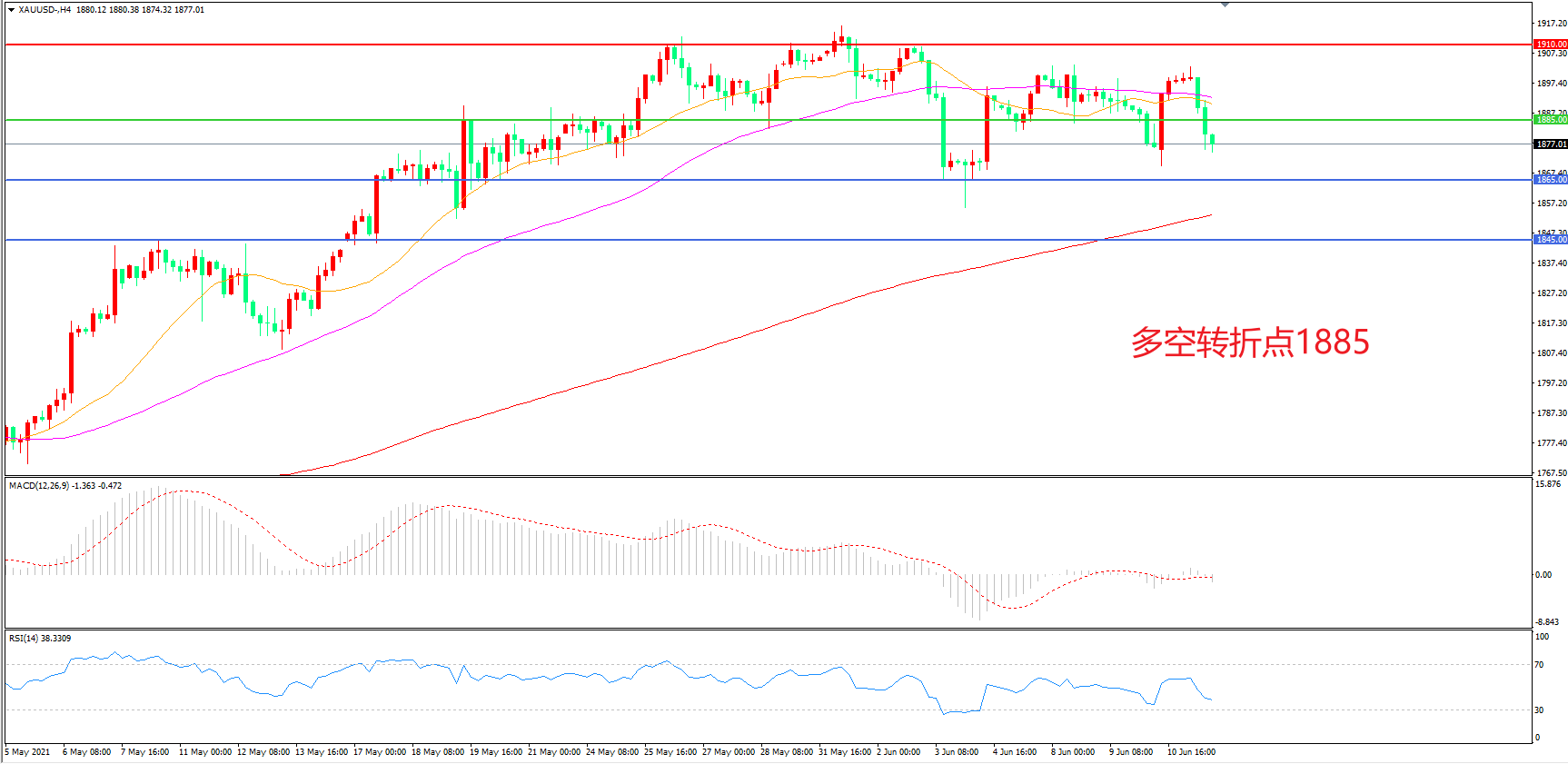 交易策略:在1885.00之下看跌,目标1865.00    1845.00