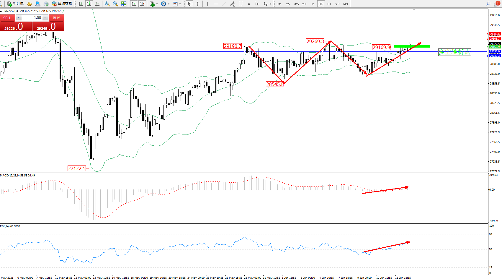 技术点评:长时间维持在布林带指标通道内持续宽幅震荡走势中,期间多次来回试探上下轨区间节点,延续布林带指标上轨附近节点不断向上移动中,此前高位29269位置近在咫尺破位在即,布林带指标呈缓慢张口走势中,MACD指标处于0轴线上側弱势徘徊向上移动中,RSI指标处于50均衡线上方多头区域不断上扬中;