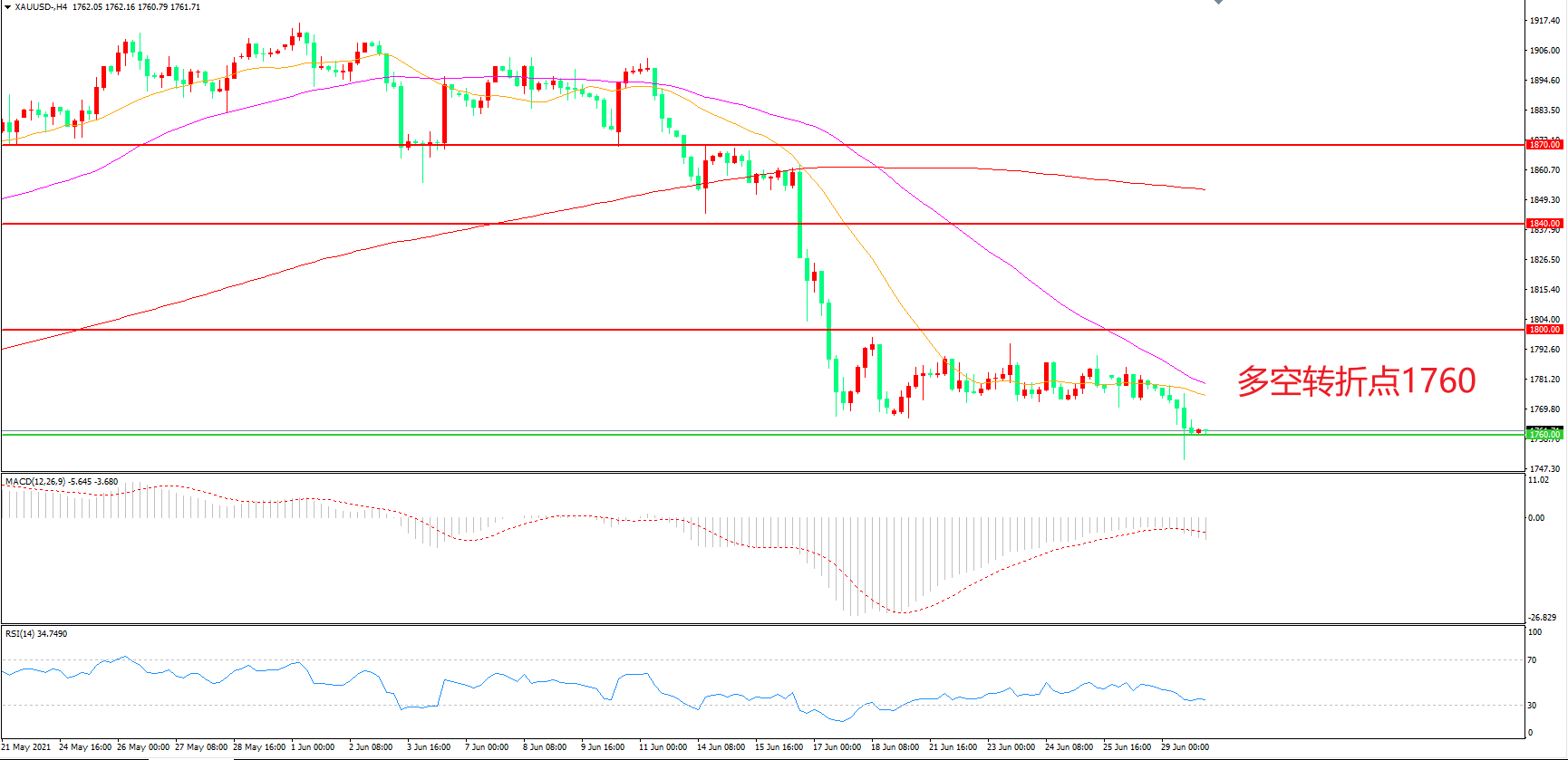 多空转折点:1760.00