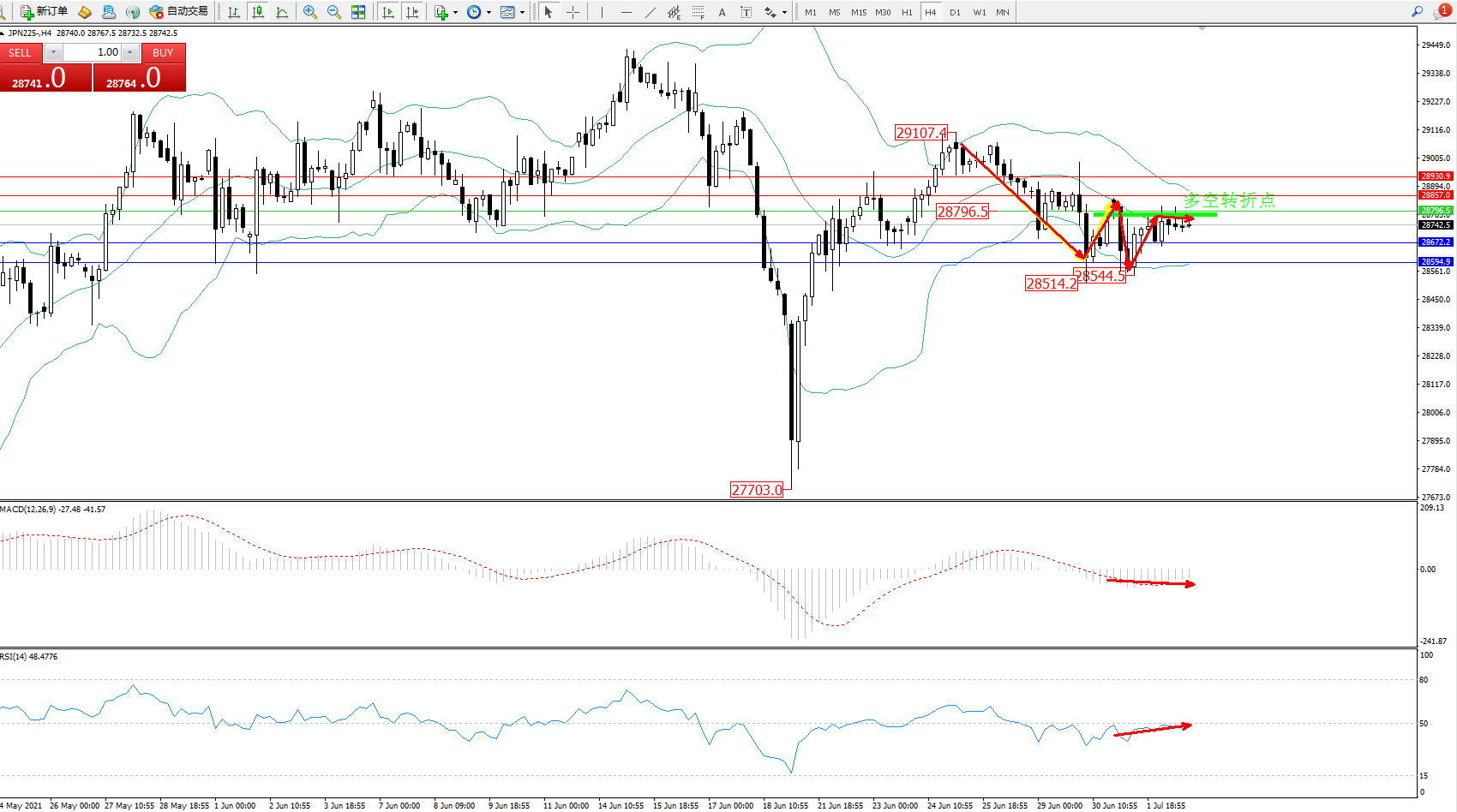 日经指数JPN225——4小时K线图显示: