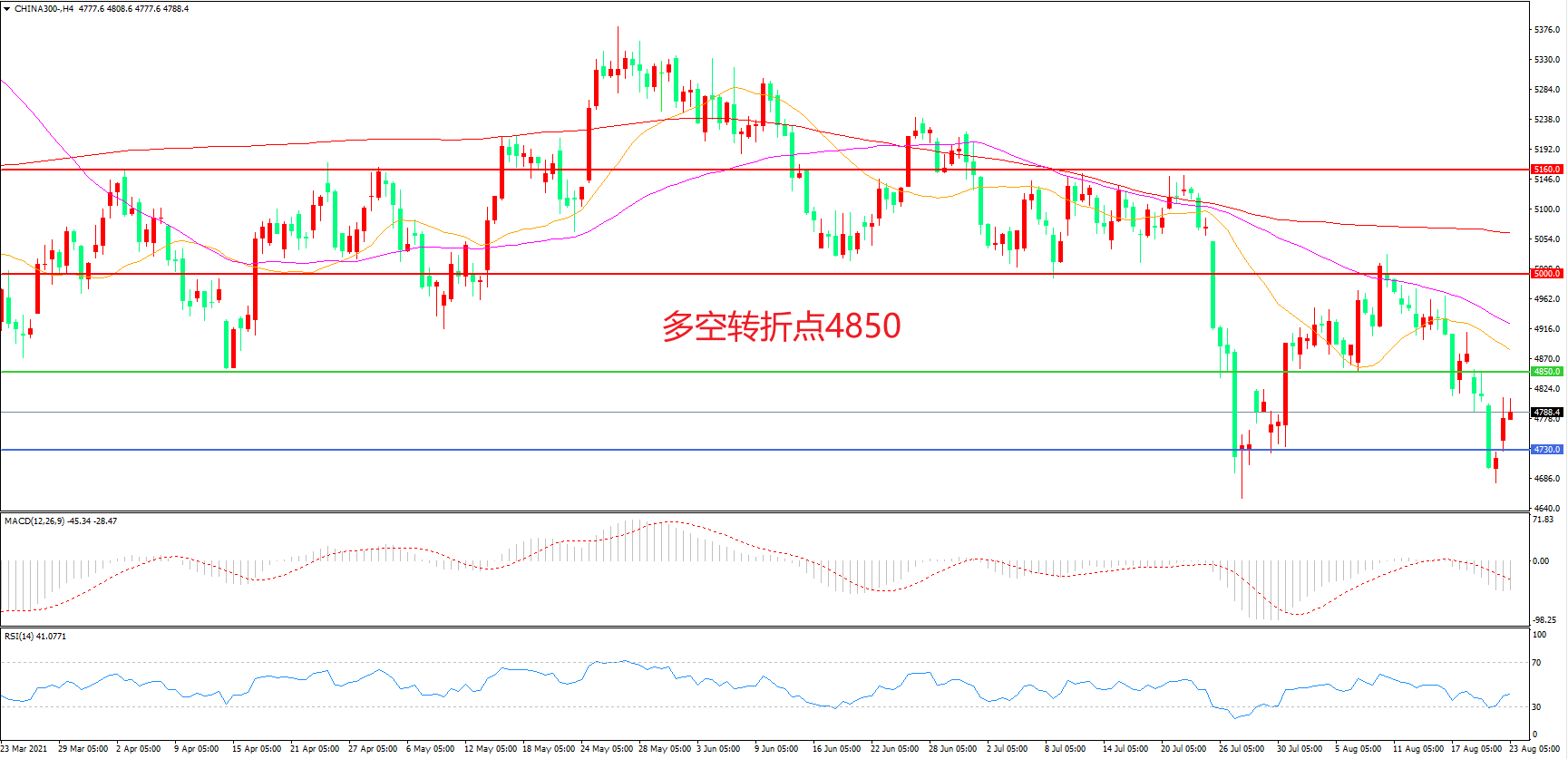 周一(8月23日),市场人气彻底扭转,A股迎来全线反攻,沪深300高开高走,收报4788.4点。两市成交额达到1.32万亿元,北向资金净买入18.31亿元。尽管市场强势反弹,但中期震荡格局并未改变,后市能否进一步上攻还需要继续关注市场主线能否形成合力。在外围政策退出预期强化、中国增速趋降和产业监管政策担忧的背景下,可能要淡化对未来行情的整体预期。