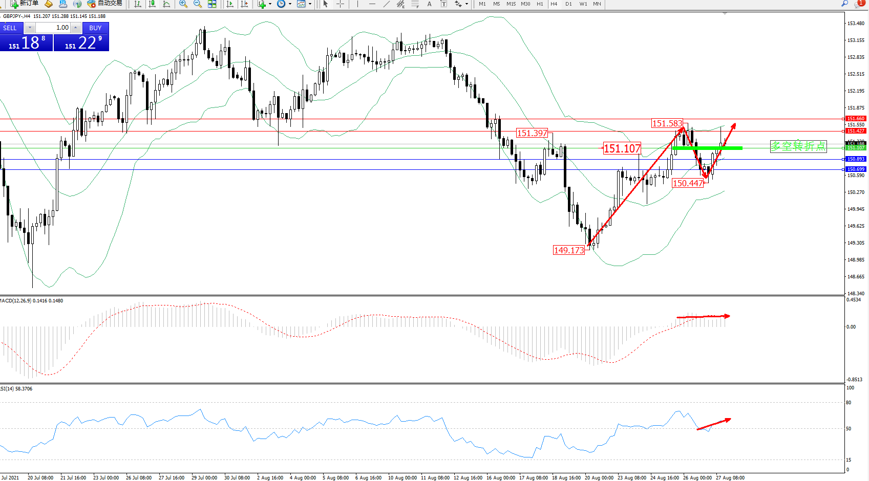 技术点评:多头动力延续布林带指标通道中上轨区间持续震荡上扬,高位抵达1.37799位置后短暂遇阻,但上行趋势走势良好,布林带指标呈收口走势持续平移后有继续拉升态势,MACD指标处于0轴线附近弱势徘徊中,RSI指标处于50均衡线上方开始拉升中;