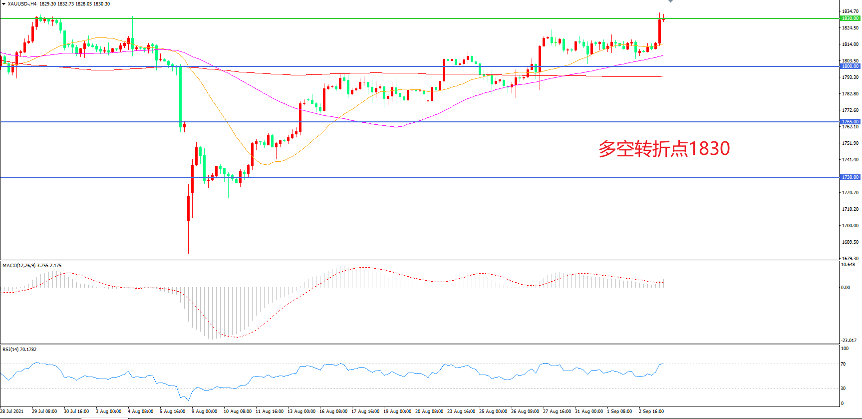 多空转折点:1830.00