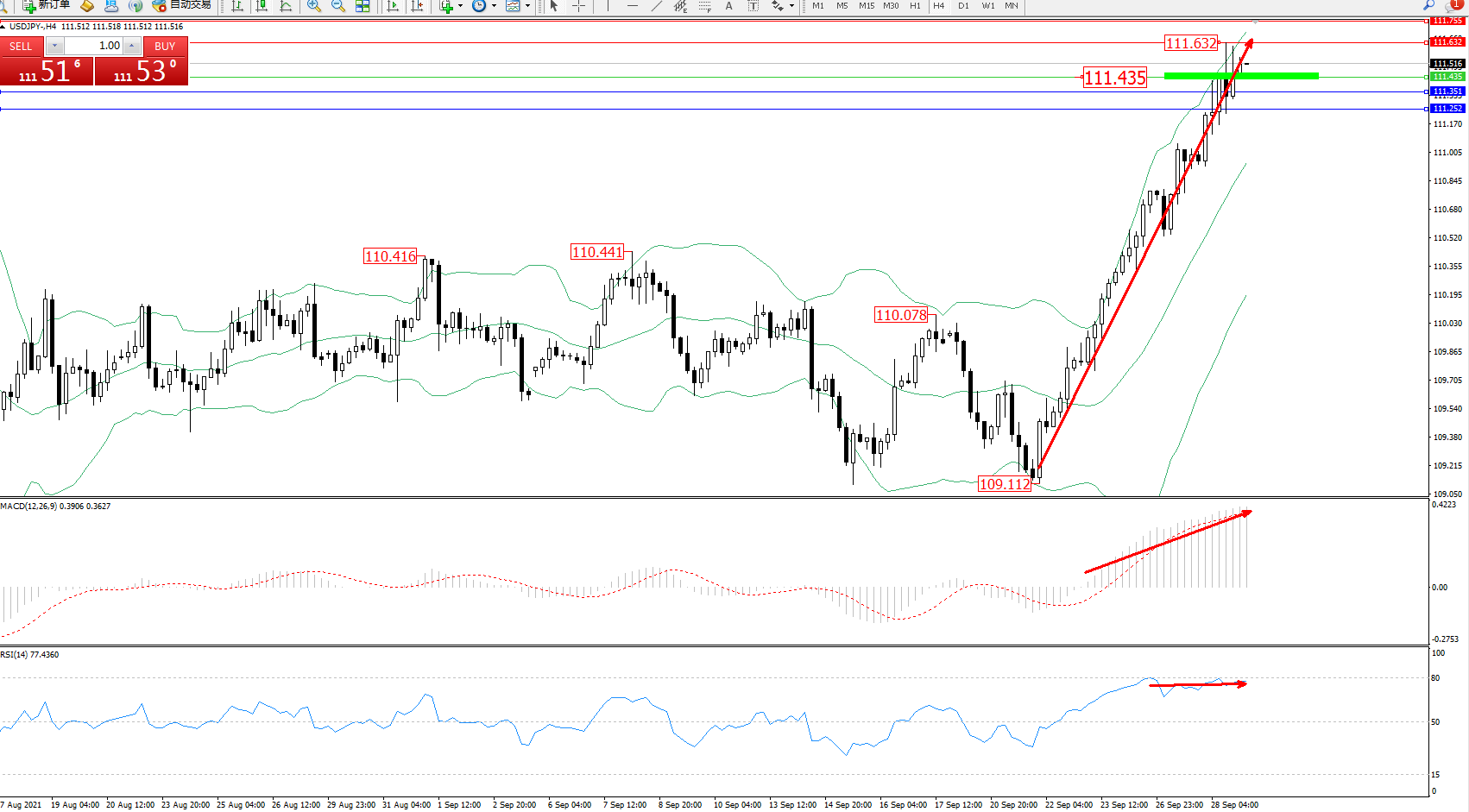 交易策略:111.435上方看涨,目标111.632、111.755