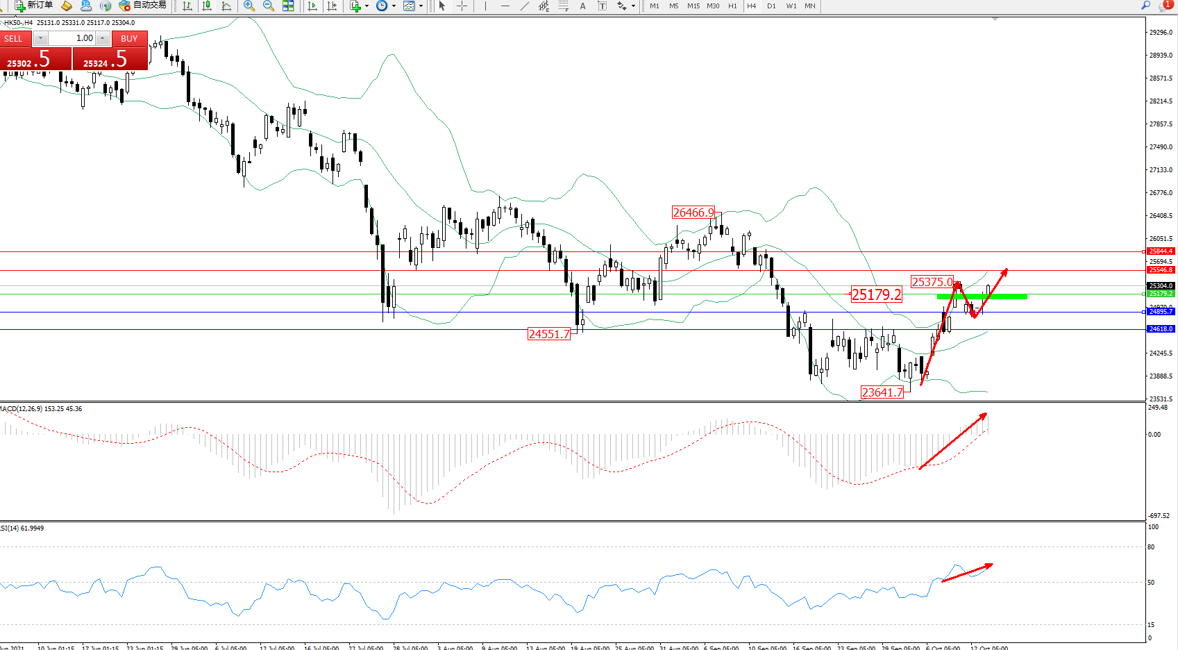 恒指HK50 ——4小时K线图显示: