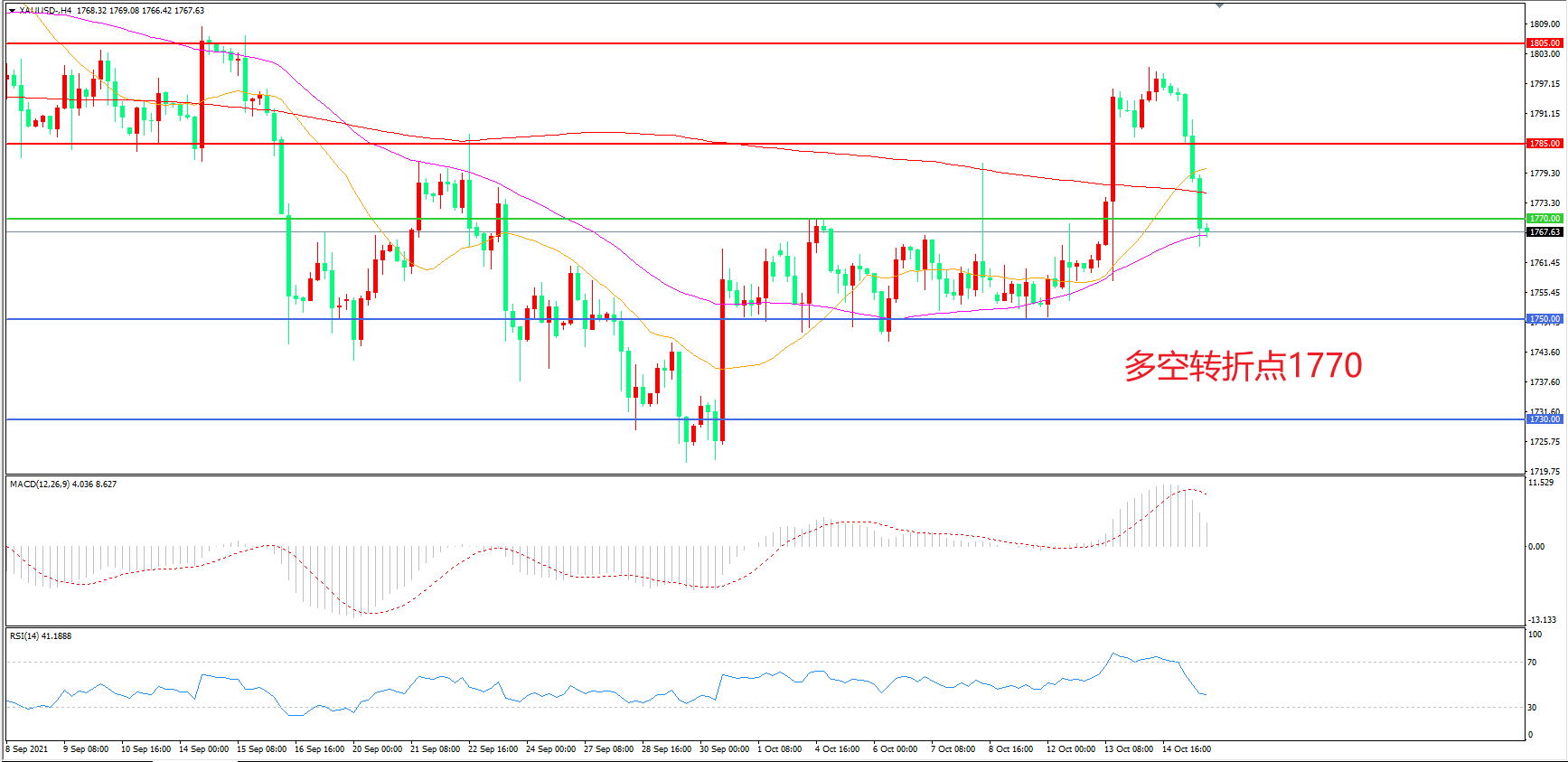 交易策略:在1770.00之下看跌,目标1750.00 1730.00