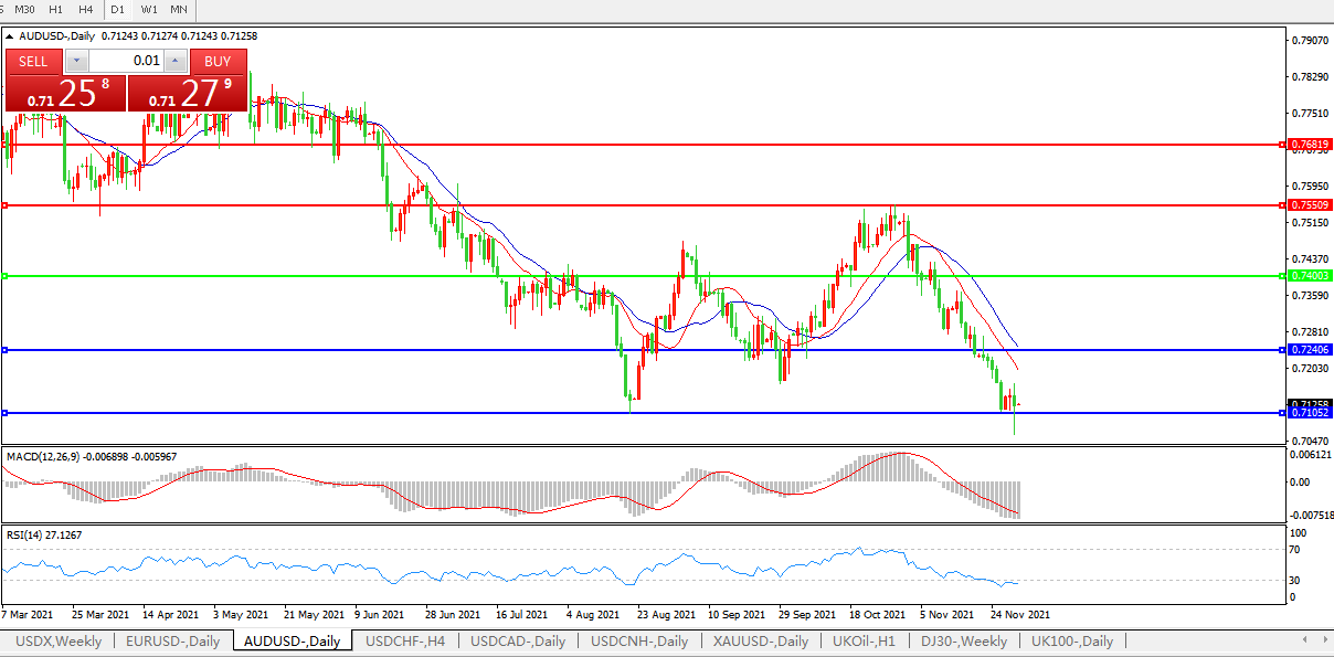 交易策略:0.7400下方看跌,目标0.7240、0.7100